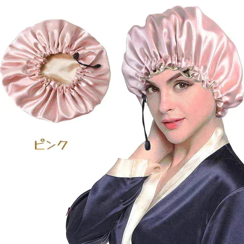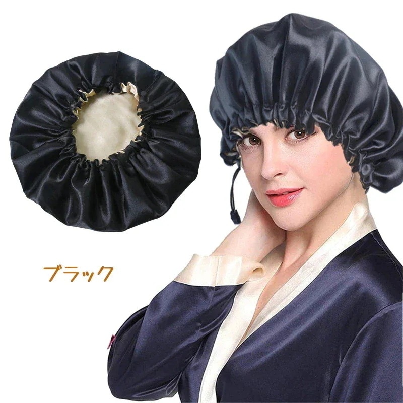【メガ割り】ナイトキャップ 2点セット シルクキャップ シルク100% 紐付き サイズ調整可能 ロングヘア ショートヘア 対応 ヘアキャップ 就寝用