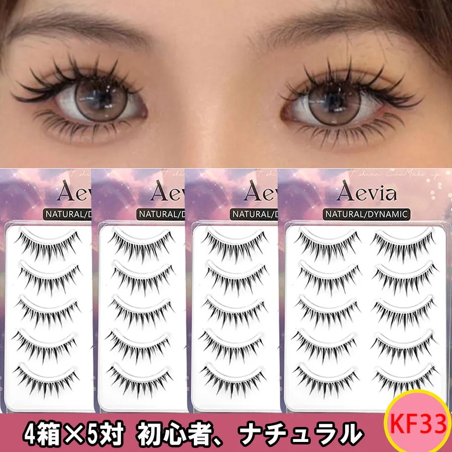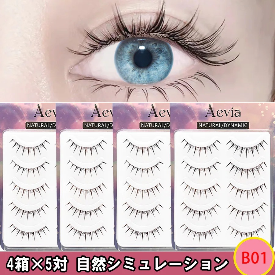 [4箱セット] 付けまつげ 20ペア (5デザイン入)自然 目元 1日持ち 敏感肌対応 簡単装着 通勤用