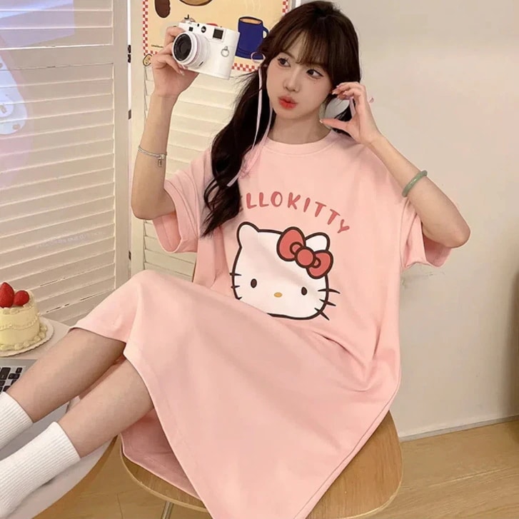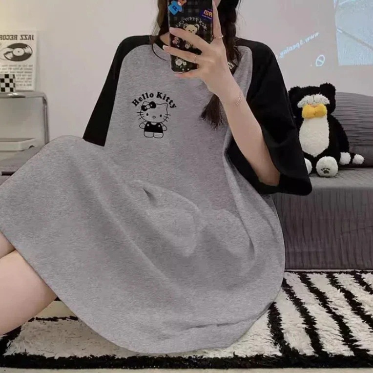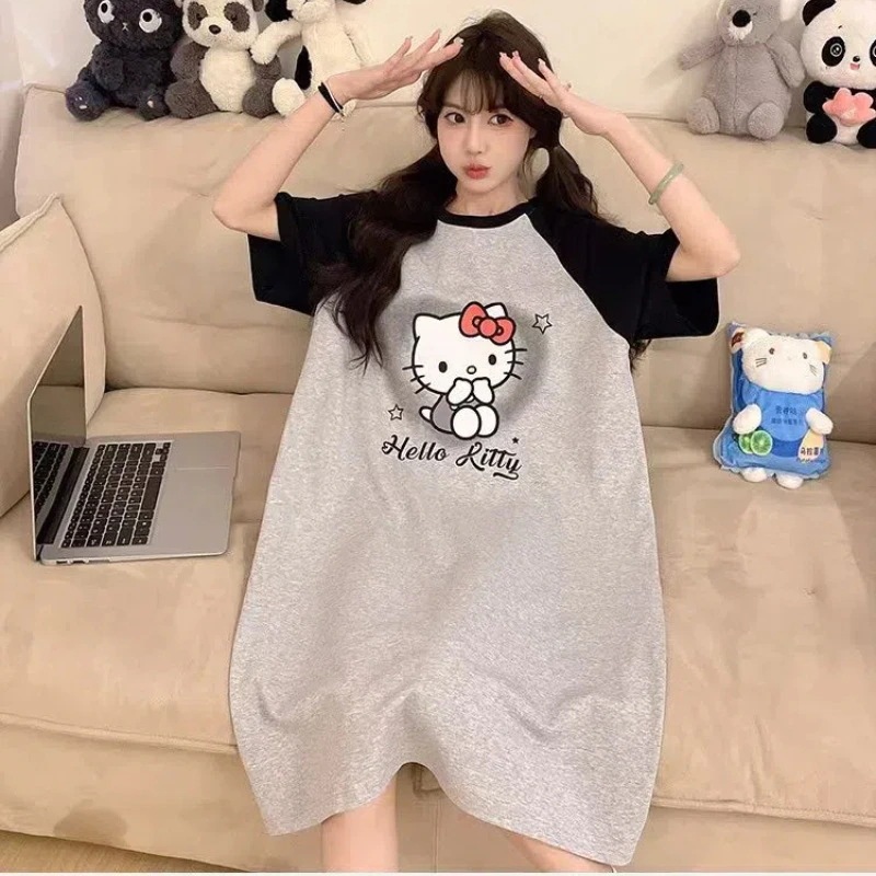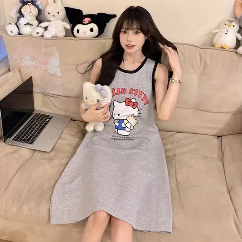 の新作キティちゃん 袖なし/半袖ロングマキシ丈ワンピ パジャマ ストラップナイトガウン 部屋着 スパイダーマン キティ ワンピースドレス 肌触り カジュアル薄手 外着可能