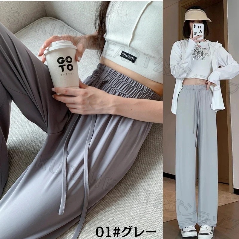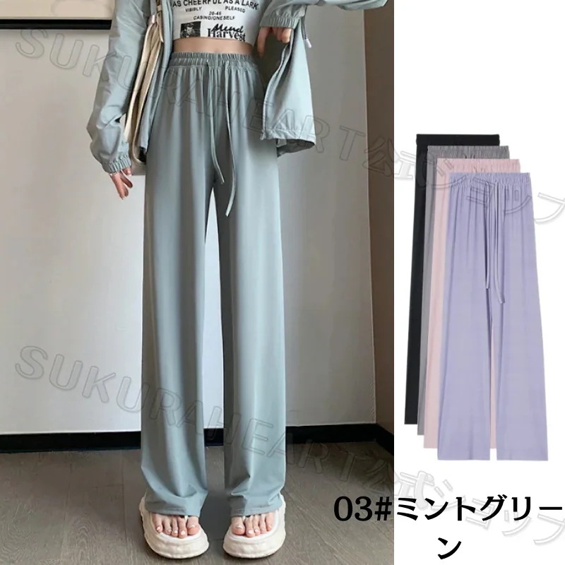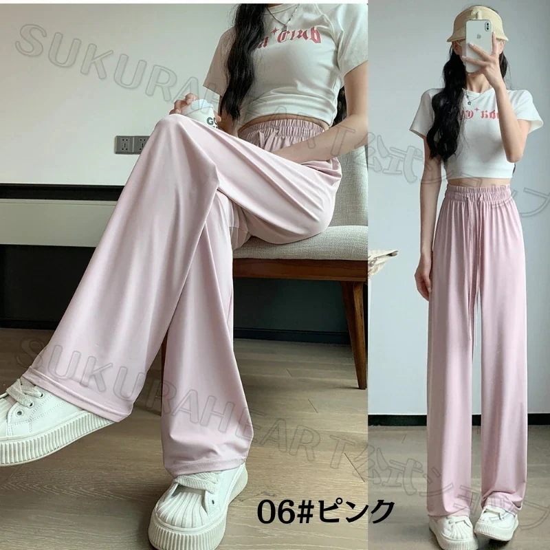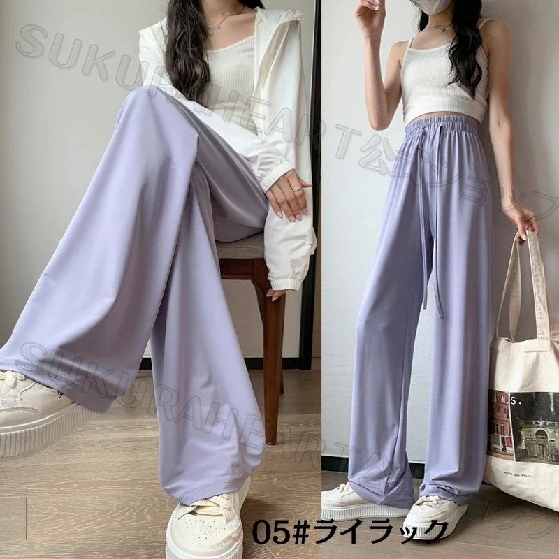 【2点購入で200OFF】韓国 接触冷感!夏 UVアイスシルク ワイドパンツ レディース スウェットパンツ ストレッチウエスト引き締め 軽量で風通しの良い 脚を美し 日焼け防止 紫外線対策[6 カラー
