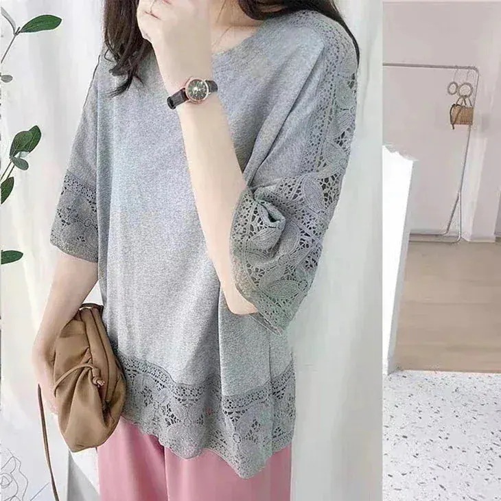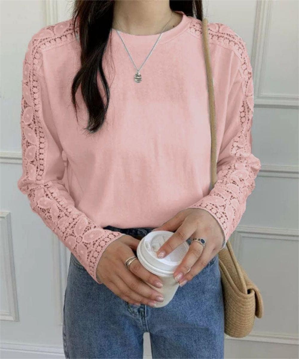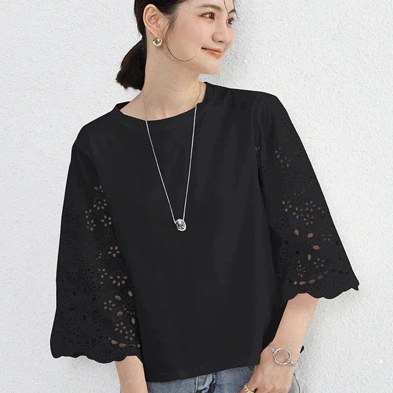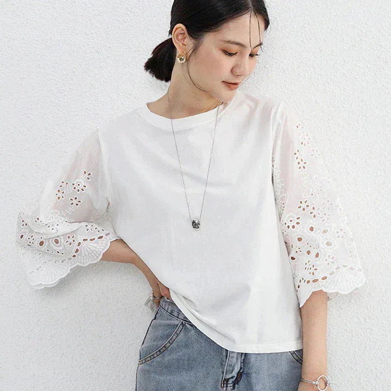 【本日限定】長袖タイプ追加!超目玉 レースtシャツ ブラウス 刺繍 夏服 秋 二の腕 カバー トップス レディース 着痩せ 切り替え Tシャツ カットソー 半袖 パンチングレース 韓国ファッション
