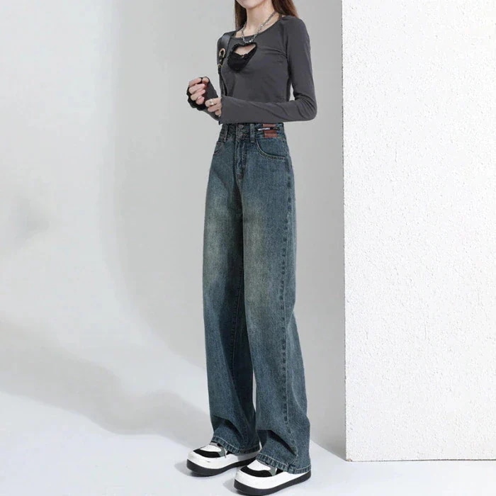 【2025夏新作】 ハイウエストデニム デニムパンツ レディース ゆったり 脚長パンツ 微弾ワイドジーンズ ジーパンレディース 韓国ファッション 夏 体型カバー 着痩せ ボトムス