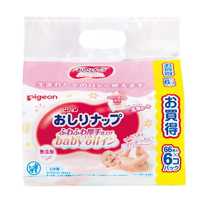 ピジョン【おしりふき 詰替用】ピジョン Pigeon おしりナップ ふわふわ厚手仕上げ ベビーオイルイン 66枚×6パック