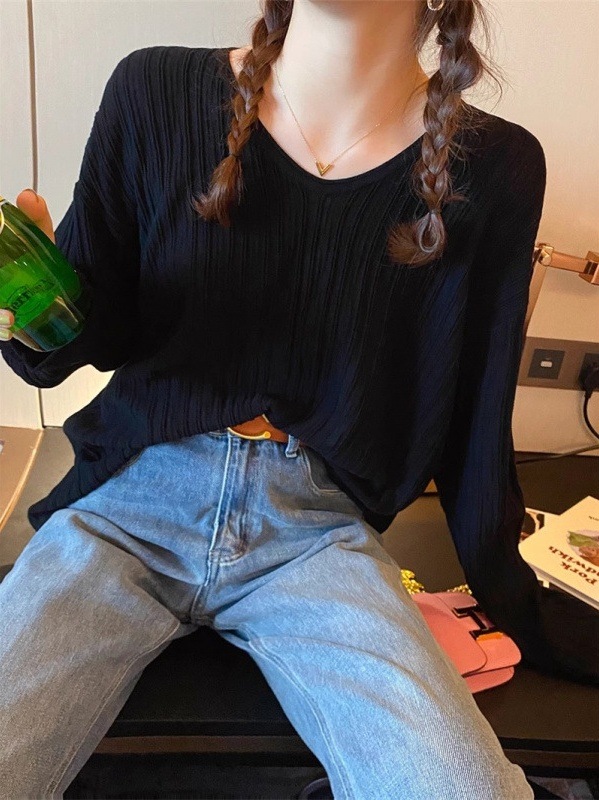 2025春新作アンダーウェア シンプル 大きいサイズ無地 長袖トップスニットシアーシャツ 日韓国ファッション百掛け人気商品 ベーシックニット快適