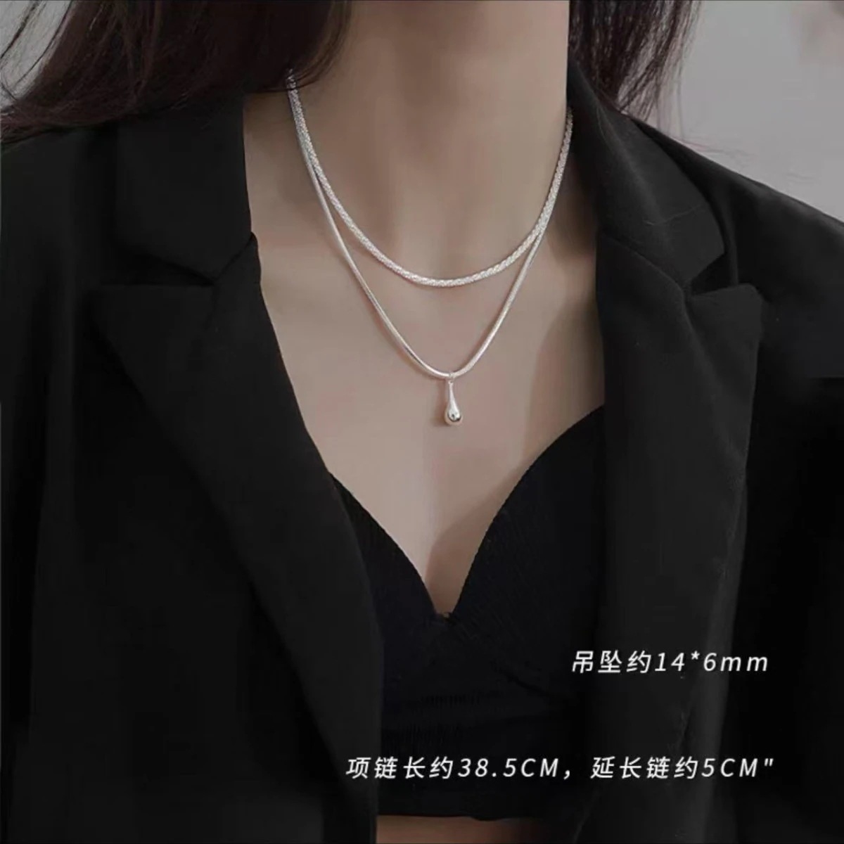 925シルバーメッキ ミニマルデザイン ダブルレイヤー スターダスト ドロップ型鎖骨チェーン ニッチなデザイン感のドロップ型ペンダントネックレス