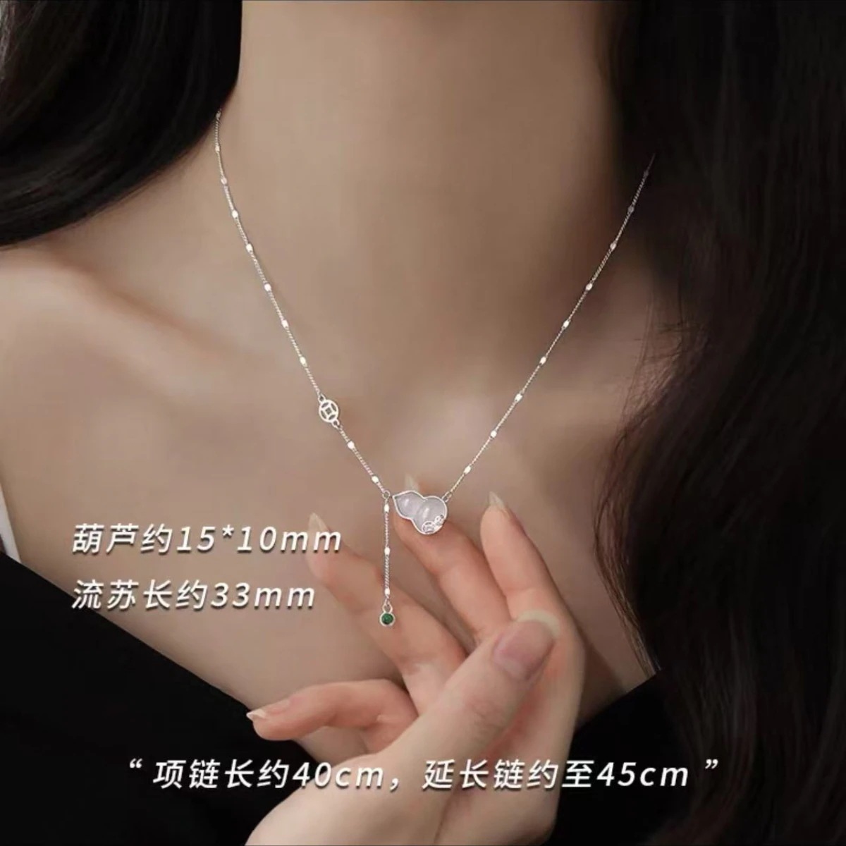 925シルバーメッキ ジャスパーの葫芦型ネックレス 2025年新作 高級感あふれる鎖骨ラインのネックレス