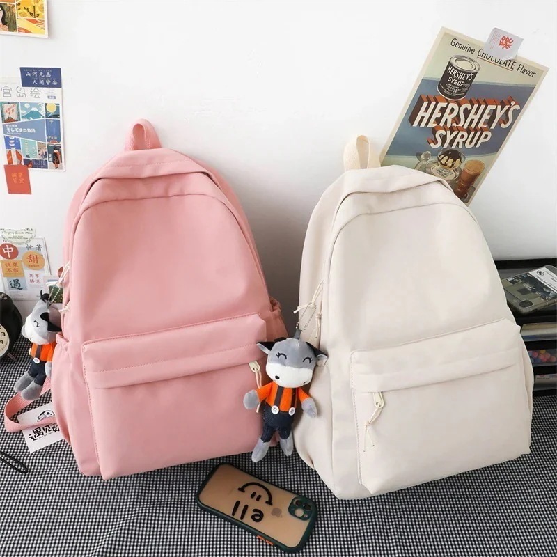 大容量学生ショルダーバッグ春作本製無地スクールバッグ女性韓国語原宿大学生バッグ