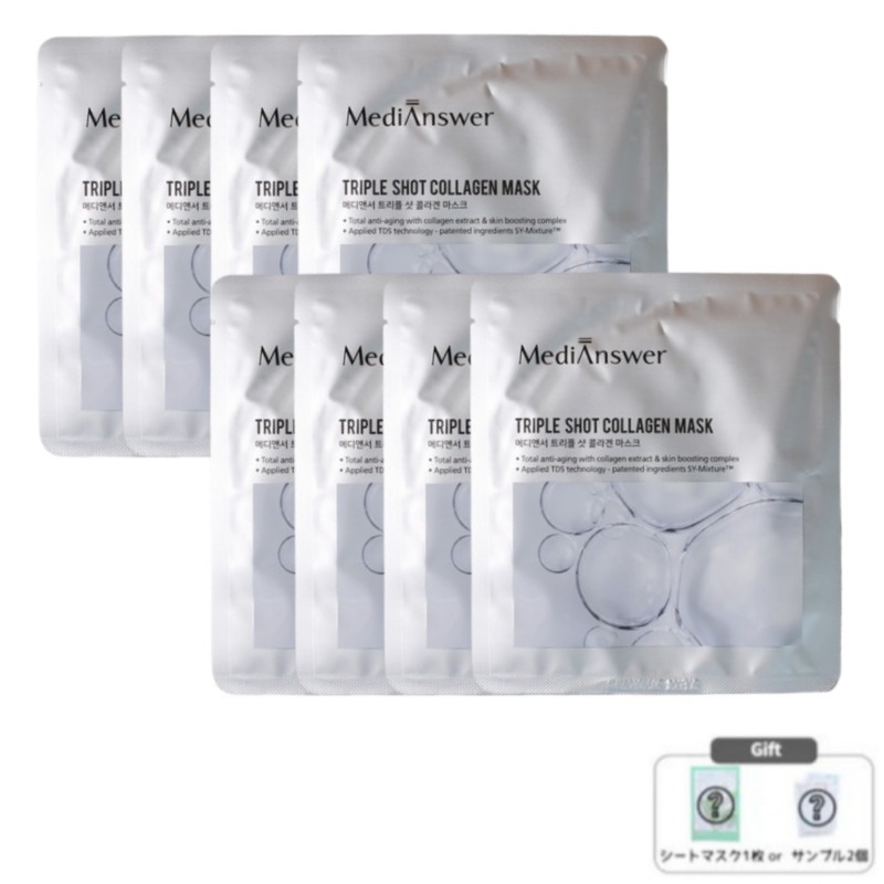 MediAnswerトリプルショットコラーゲンマスク 8枚 / うるおい×ハリ肌 グルタチオン ヒアルロン酸 ペプチド エイジングケア 保湿・つや肌