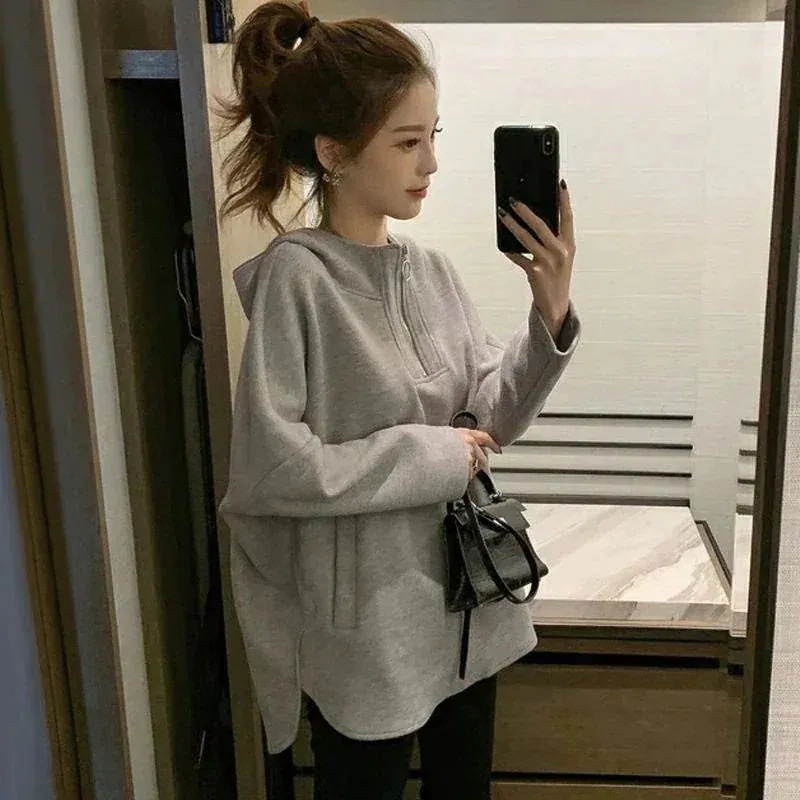 パーカー ゆったりスウェット 韓国ファッション 大きいサイズの太った衛衣女 秋服新しいゆったりとした腹部を隠す痩せた帽子ファッションだるい風の上の服