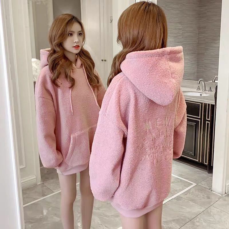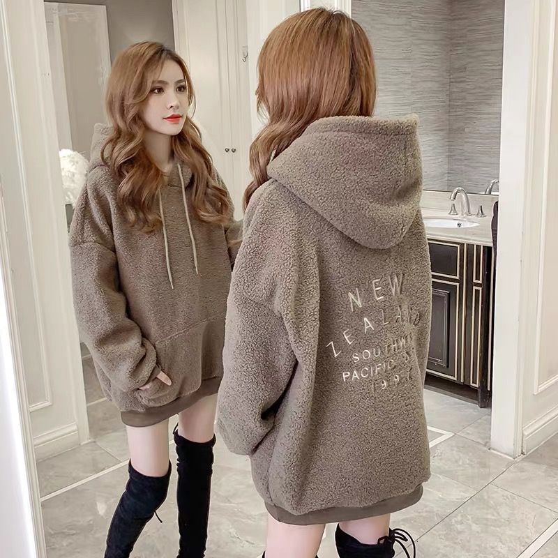パーカー ゆったりスウェット 冬 裹起毛 暖かいラムズウール 韓国ファッション 厚手 長袖トップス ゆったり百掛け レディース