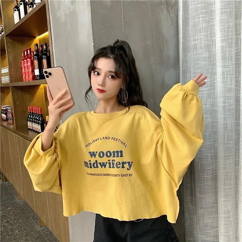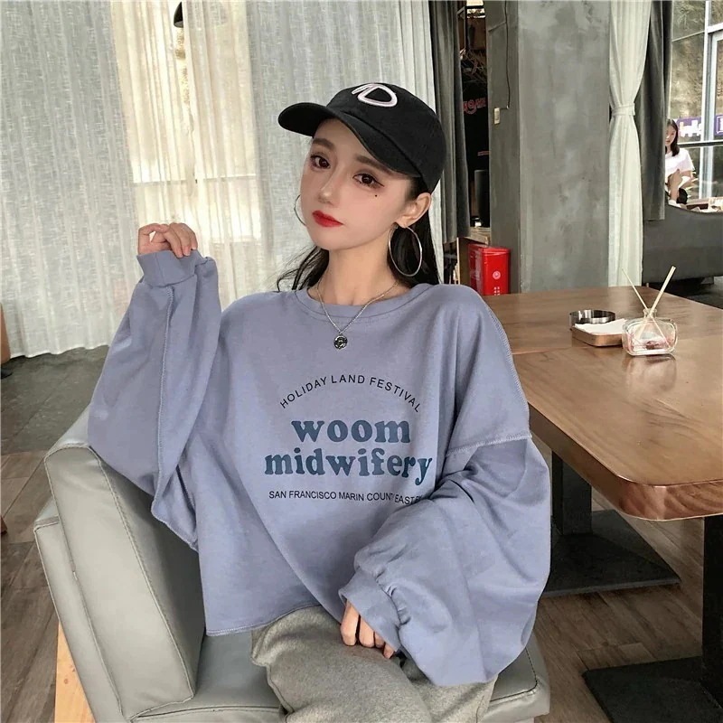 パーカー ゆったりスウェット ブラウス 韓国風新ゆったりスリム学生レタープリントラウンドネックプルオーバー薄手長袖スウェットシャツ女性用 韓国ファッション