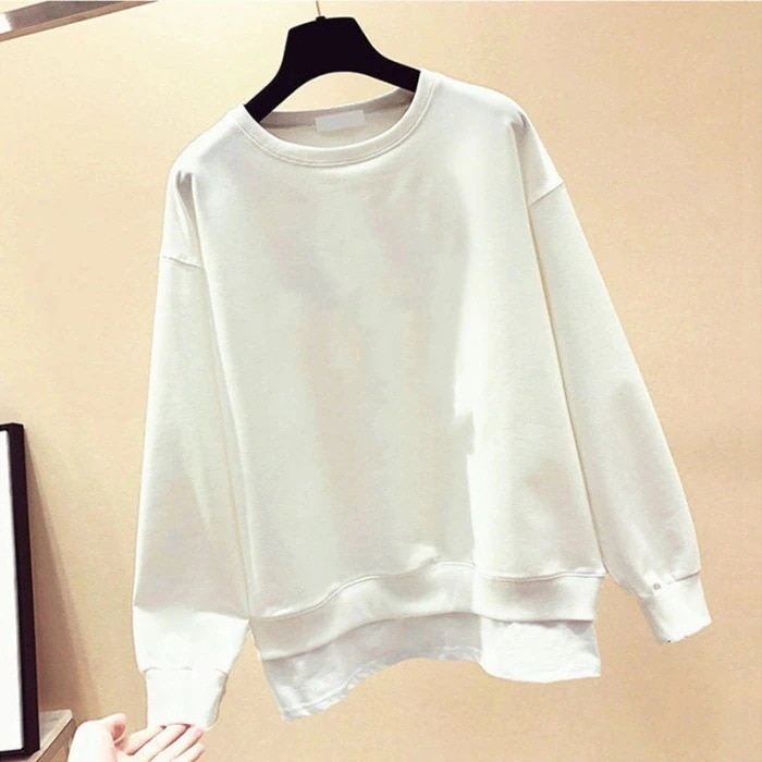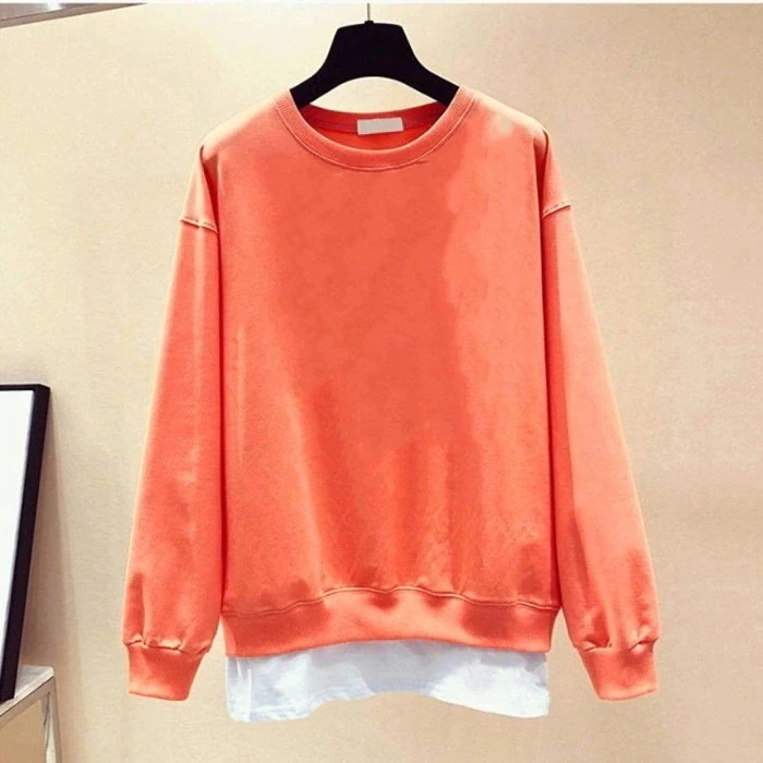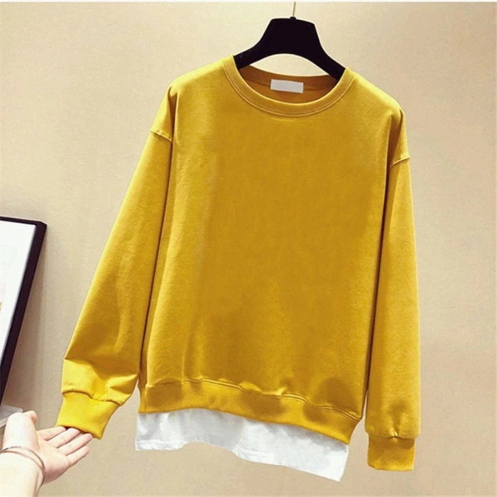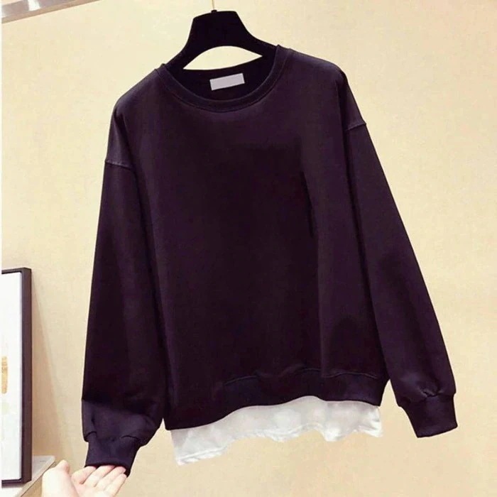 パーカー ゆったりスウェット ブラウス 無地トレーナーレディース春秋薄手フェイクツーピース大きいサイズインズ激辛長袖ラウンドネックトップス 韓国ファッション