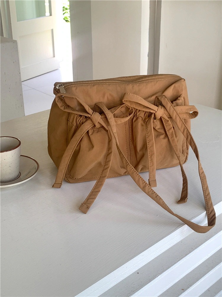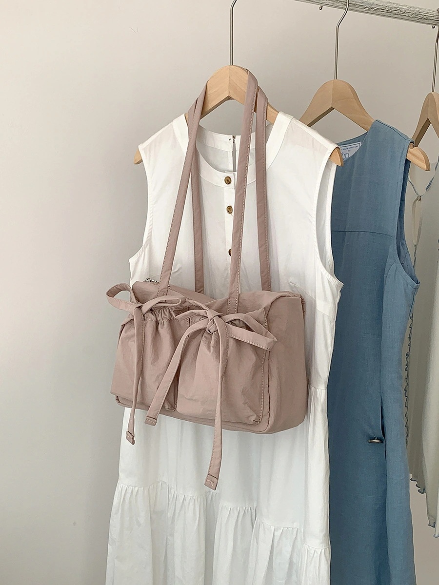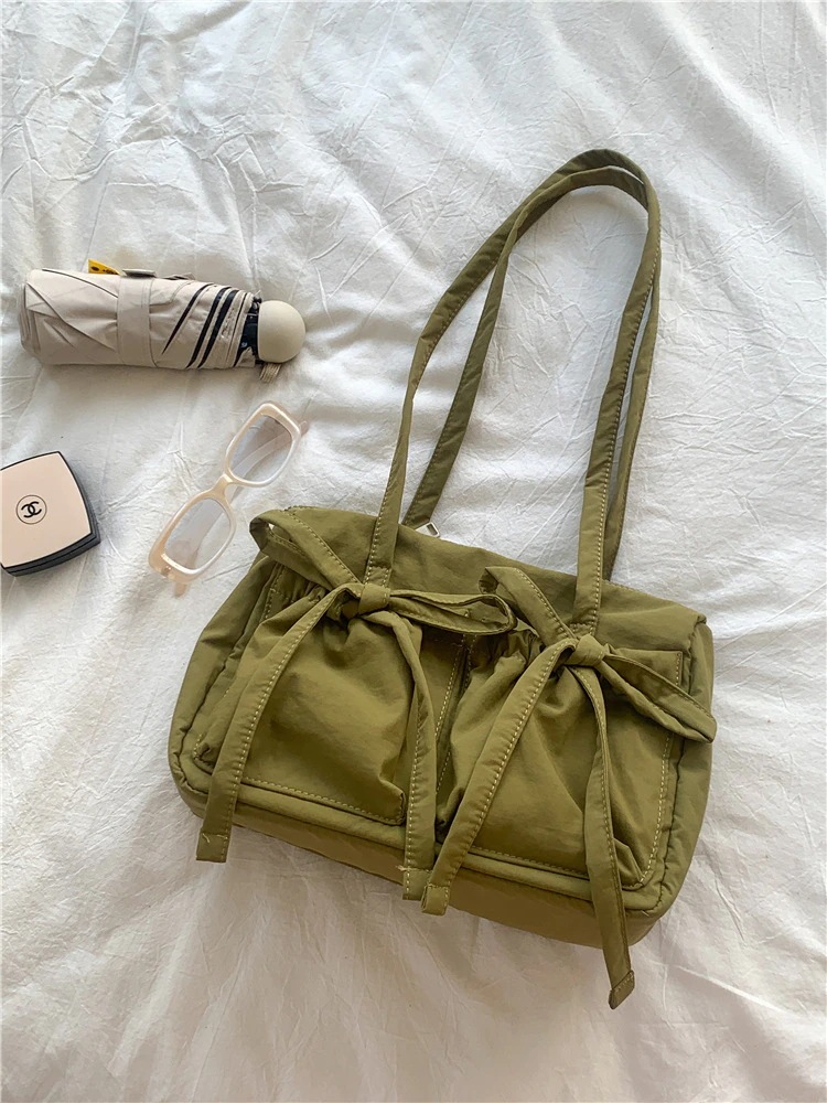 韓国製ナイロン製トートバッグ 大容量女性用 カジュアルなショルダーバッグ 大学生の通学用 バタフライリボン付き 早朝通勤用バッグ 斜め掛けショルダーバッグ