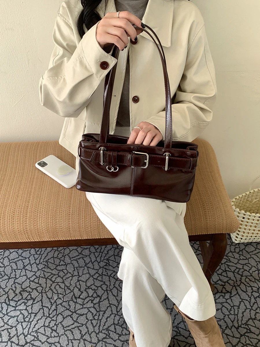 韓国版新作レディースショルダーバッグ個性的なデザイン脇下バッグ 高級感あふれる女性向けニッチなPU素材のファッションハンドバッグ斜め掛けショルダーバッグ