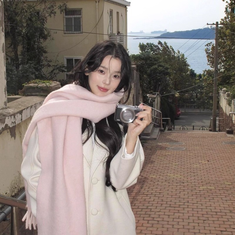 新作登場 淡いピンク ふわふわ無地マフラー 女性 秋冬 厚手カシミア風 ショール韓国 暖か ネックウォーマー万能