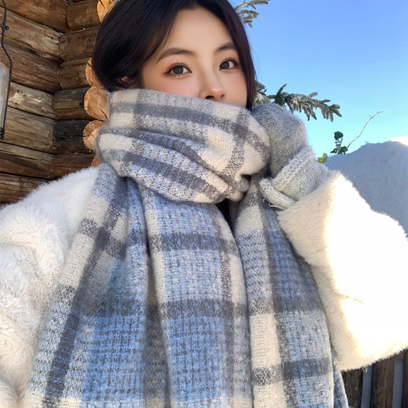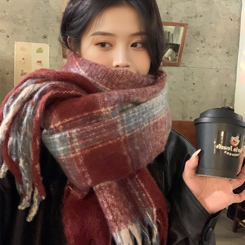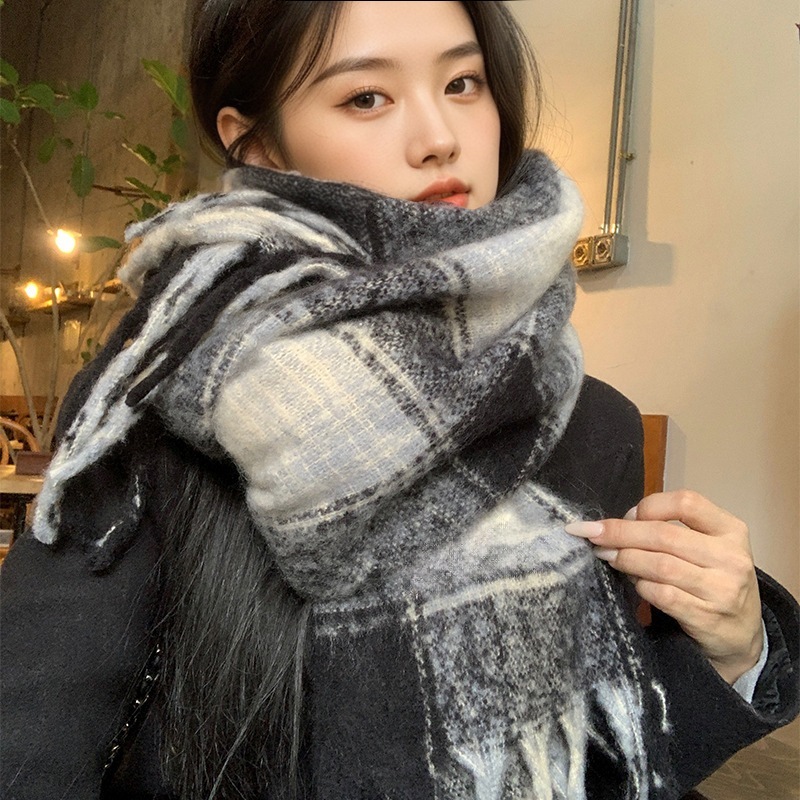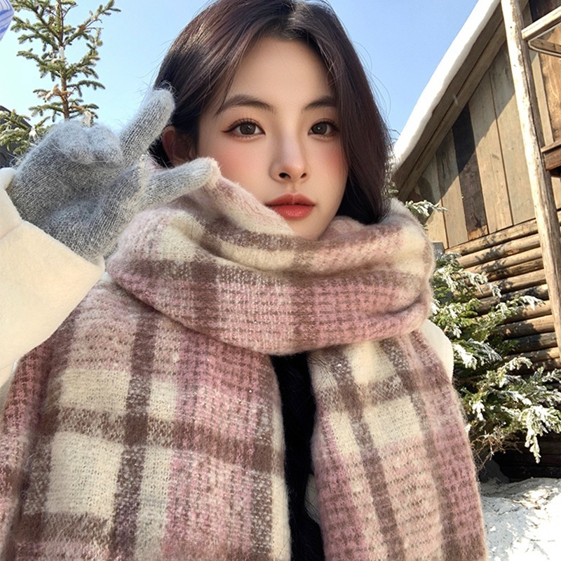 新作登場 チェック柄 冬季 マフラー 厚手 学生向け新作 韓国風 ポンポン付き 保温 カップル 合わせやすい ネックウォーマーショール