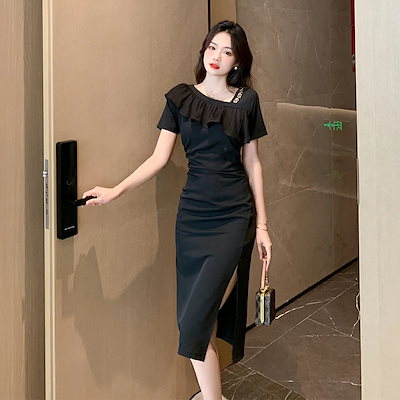 厳選素材2025 タイトワンピース 姫系ワンピース シンプル ワンピース インポート ひざ丈 ミドル丈 エレガント 韓国ファッション シンプル Vネック パーティドレス 半袖 お嬢様 セクシー ミニワ