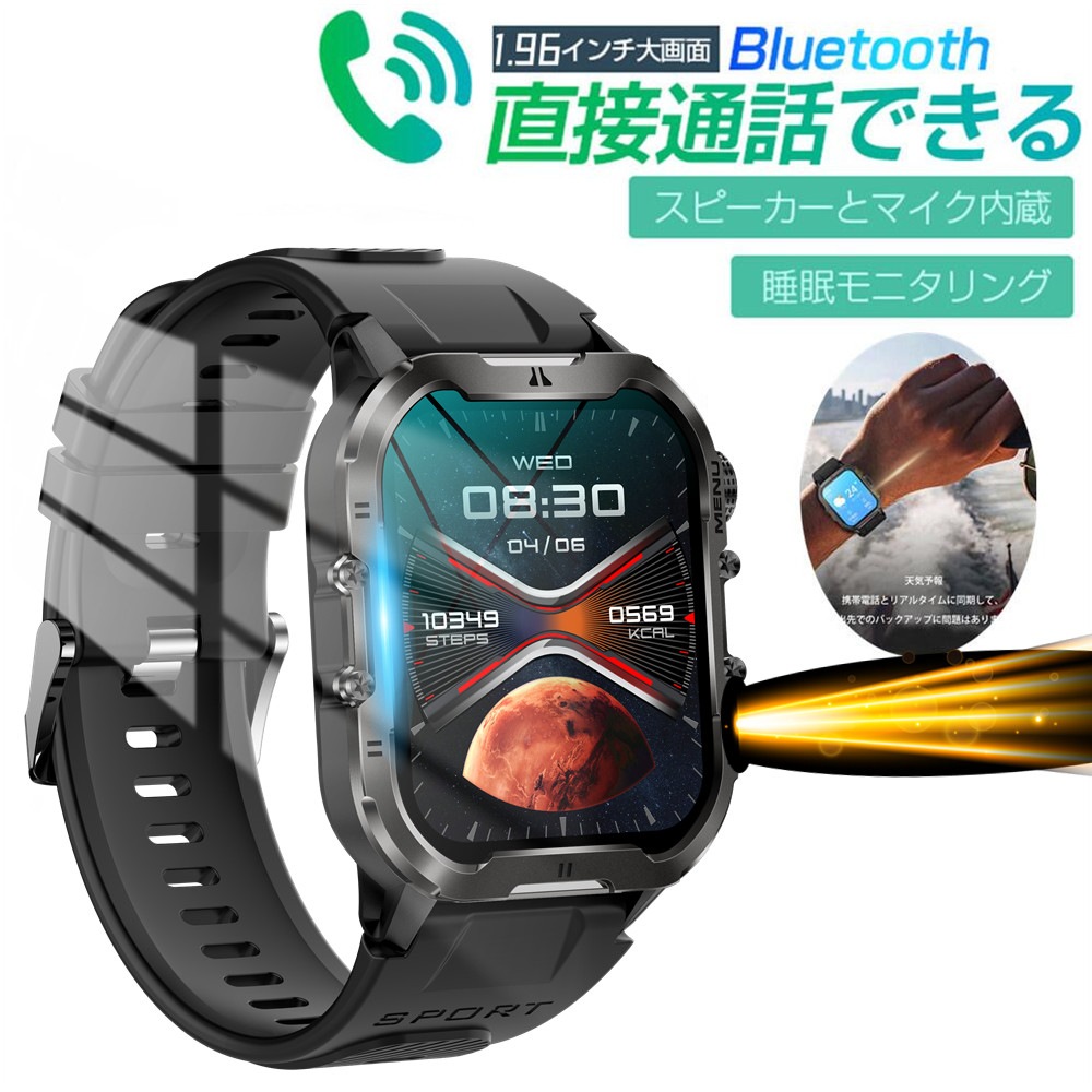 1.96インチ大画面 通話機能付き 皮膚温変動検知 LINE Gmail SOS機能 日本語対応 スマートウォッチ 血中酸素 血圧測定 iPhone Android対応