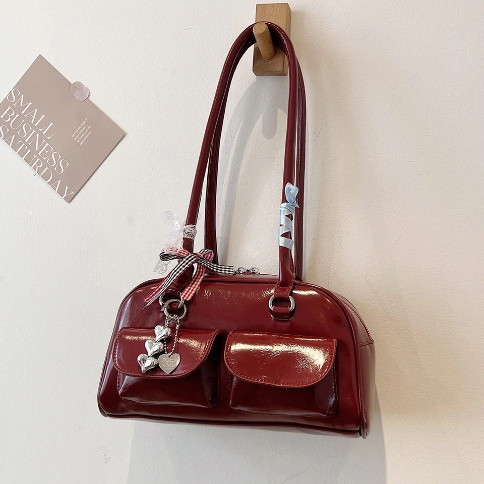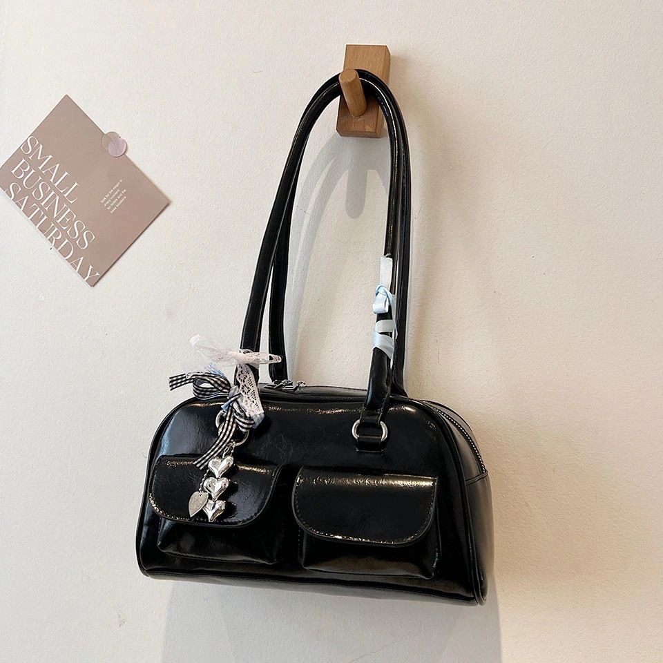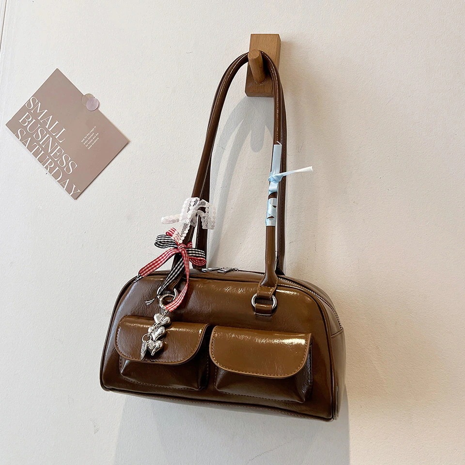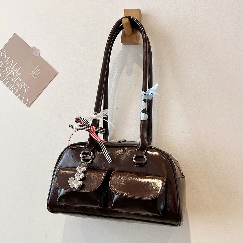 [横長ボストンバッグ] バッグ春秋2025新しい韓国のハンドヘルド大容量ショルダーバッグ [4カラー]