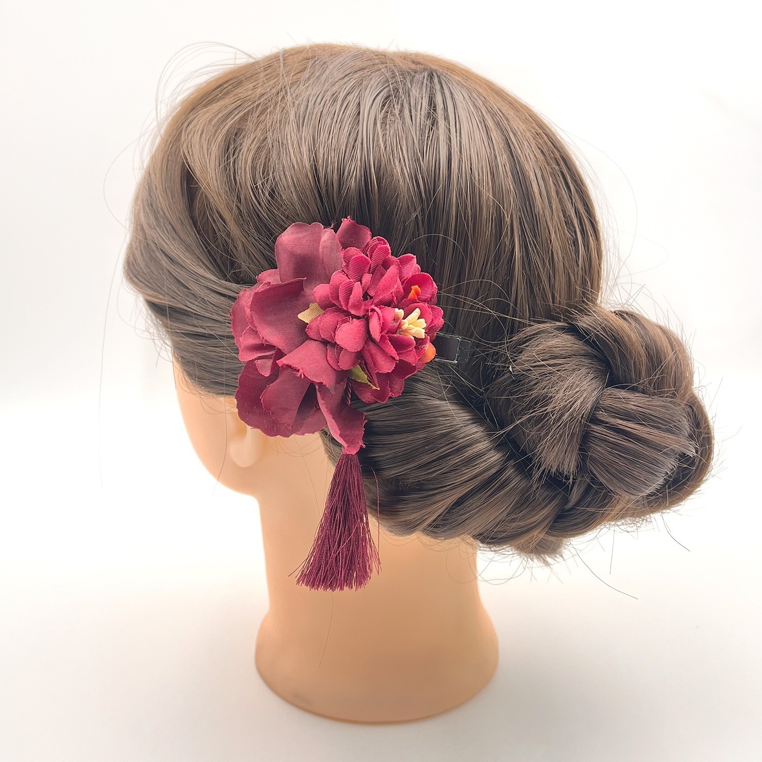 漢服の絹花と流蘇のヘッドアクセサリーレトロなオリジナルデザイン 手作りのヘアアクセサリー日本風和風のヘアピンとヘッドフラワーのアクセサリー着物用アクセサリー