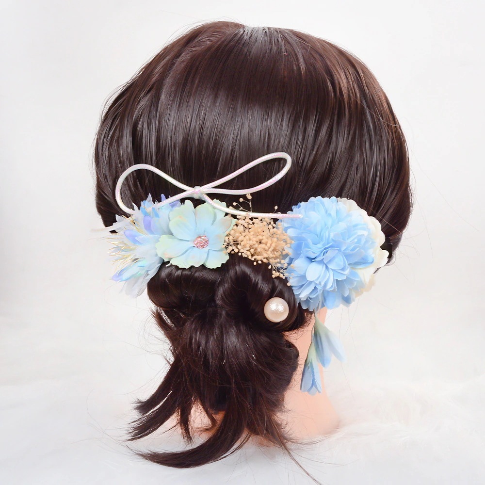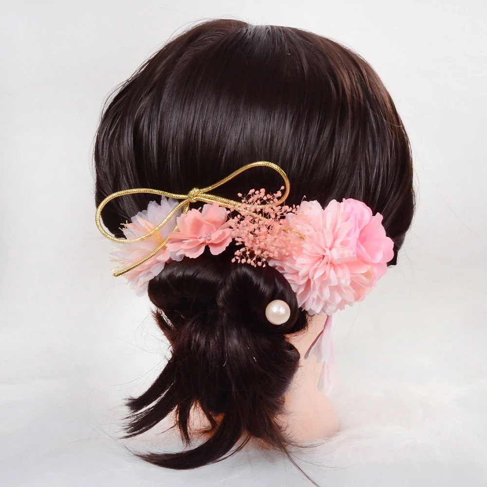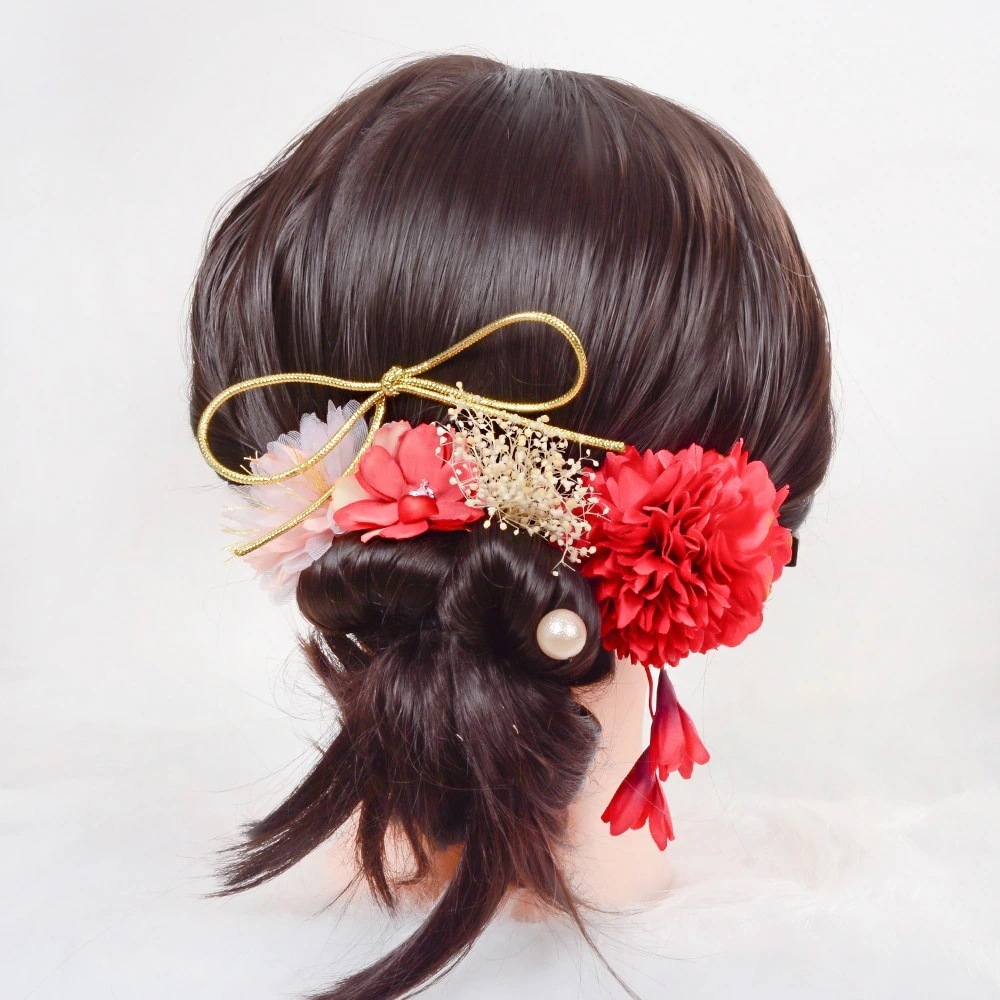 日本風浴衣祭りの和風ヘッドアクセサリー 漢服の絹花を使ったレトロな配色の手作りヘッドアクセサリーと和服のアクセサリー