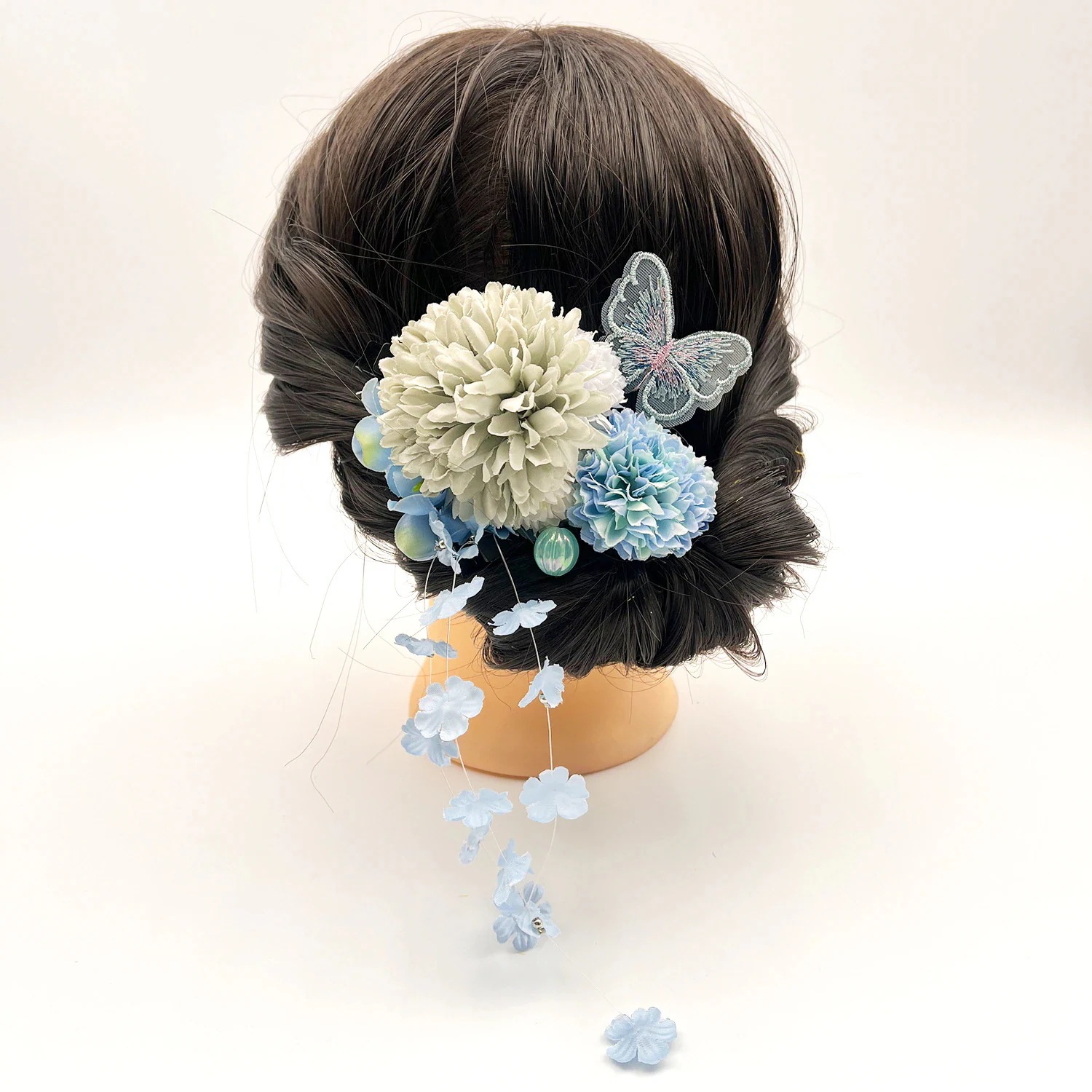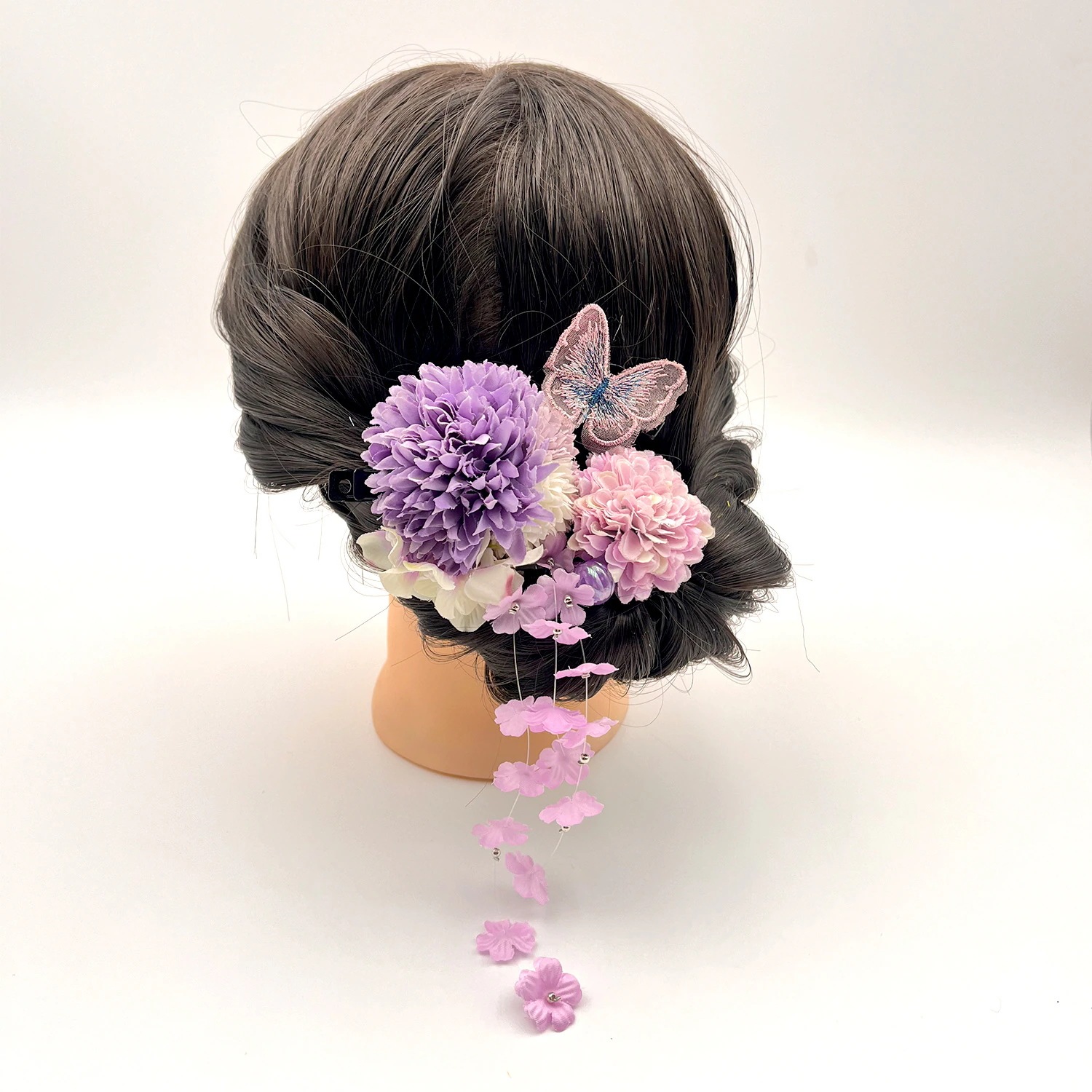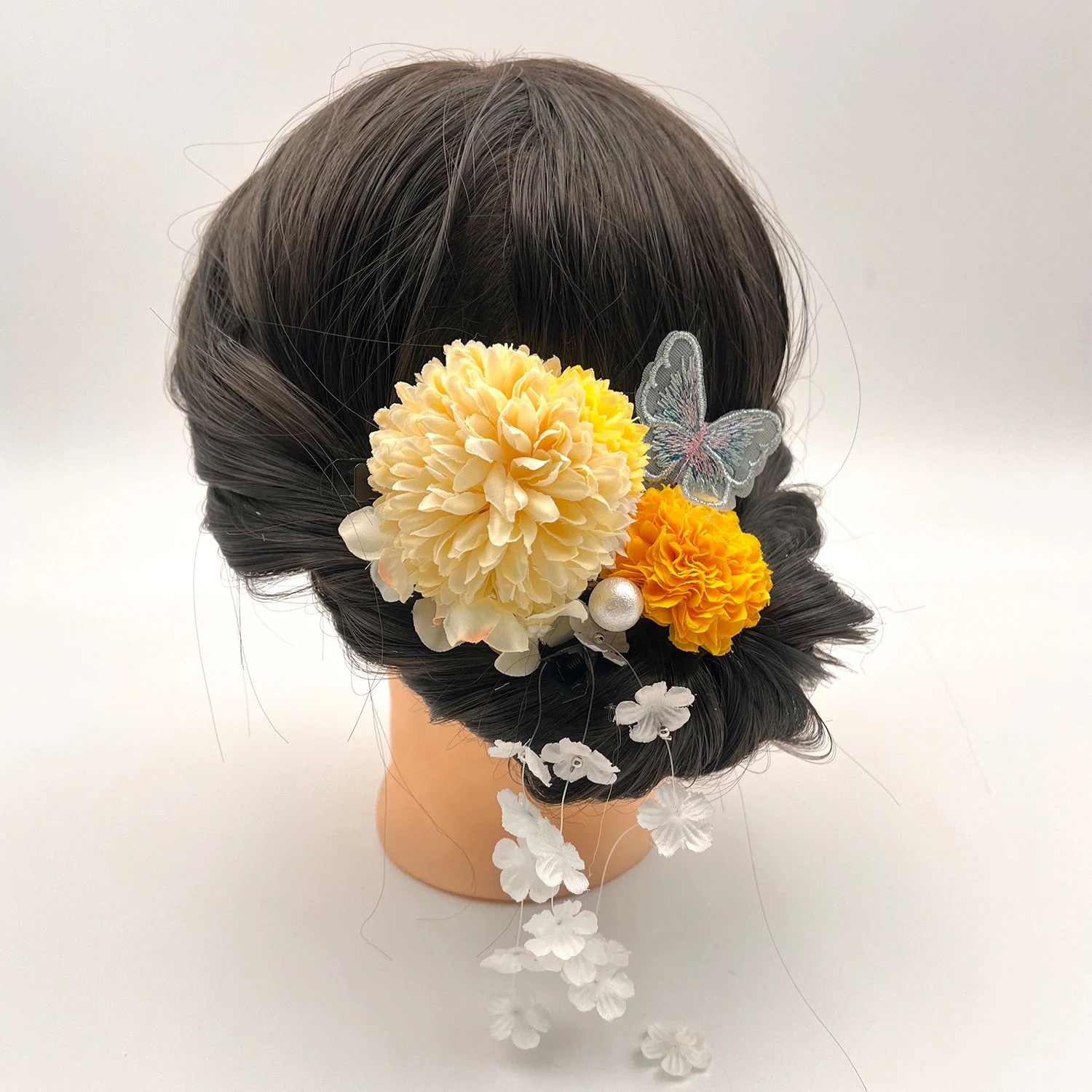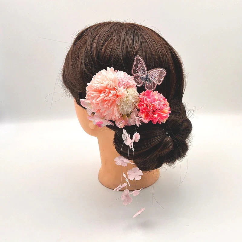 和風ヘアピンと着物用ヘッドフラワーのヘアアクセサリーセット(シルクフラワー) 日本風手作りのオリジナルヘッドアクセサリーと着物用アクセサリー