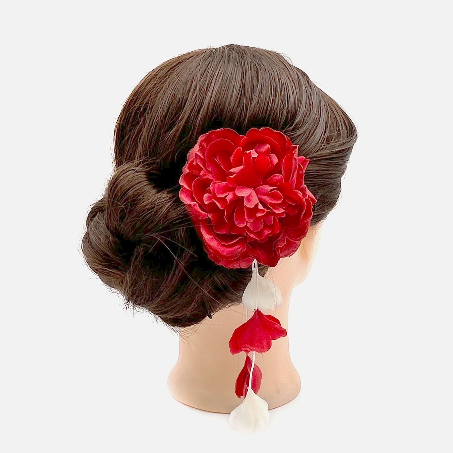 漢服の流蘇と絹花の髪留めレトロなヘッドアクセサリー 日本風の着物用ヘッドアクセサリーアヒル口型の髪留め着物用アクセサリー