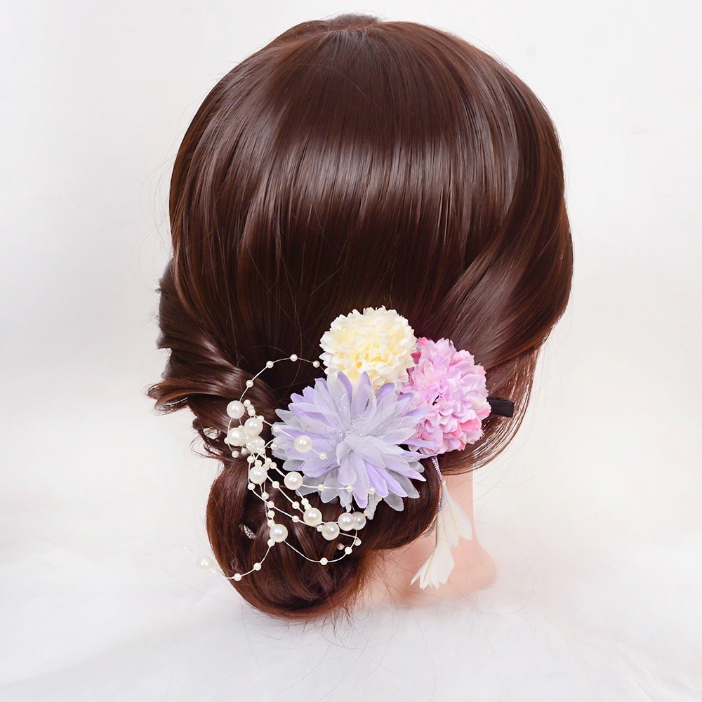 日本風ヘアアクセサリーと和風ヘアアクセサリー 人気商品 髪留め シルクフラワー 布製 小さな花柄 オリジナル手作りのヘッドフラワーセット 和服アクセサリー