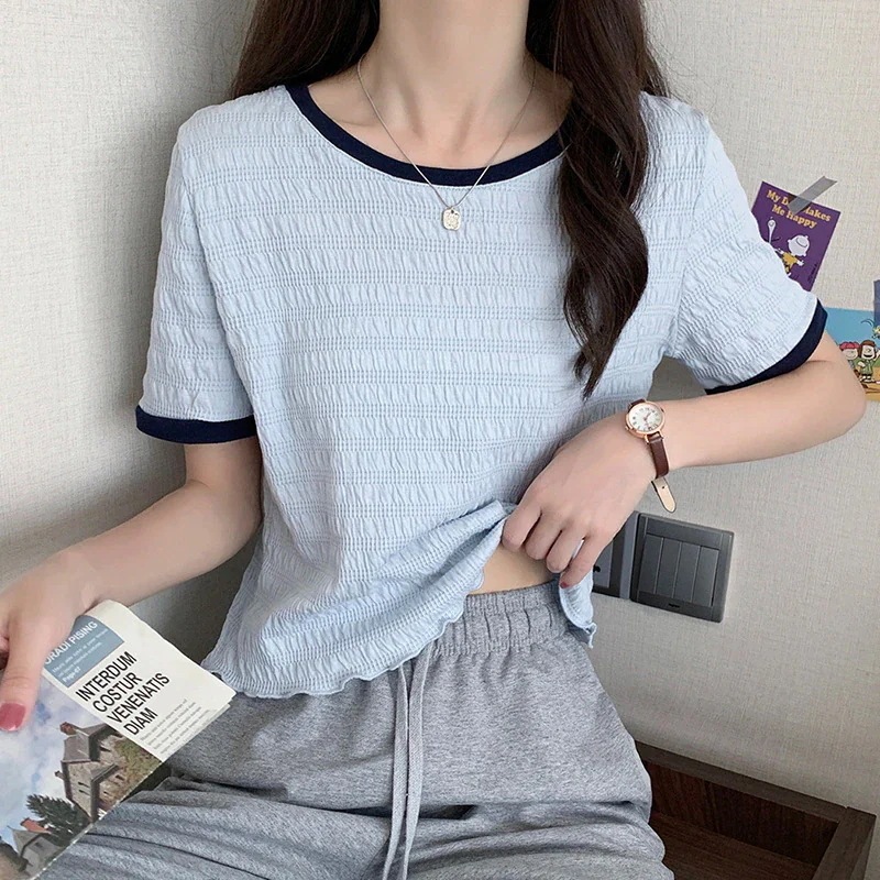 小柄な女性用正肩短袖Tシャツ 2025年春夏コレクション 韓国風スリムフィット 細身効果 インスタグラム流行ブランド ショート丈トップス Tシャツ