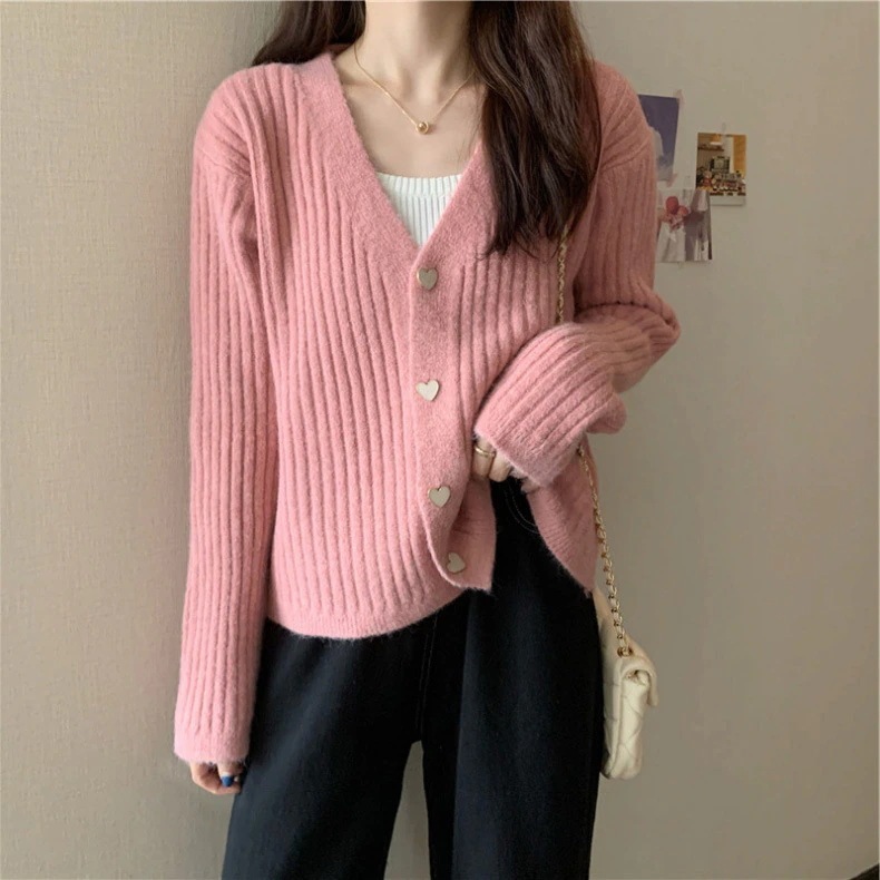 のピンクのネックセーターレディースのショートルーズルーズブラウス優しくて怠