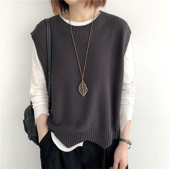 ニットベスト レディース トップス ニット 重ね着 無地 体型カバー シンプル カジュアル クールネック