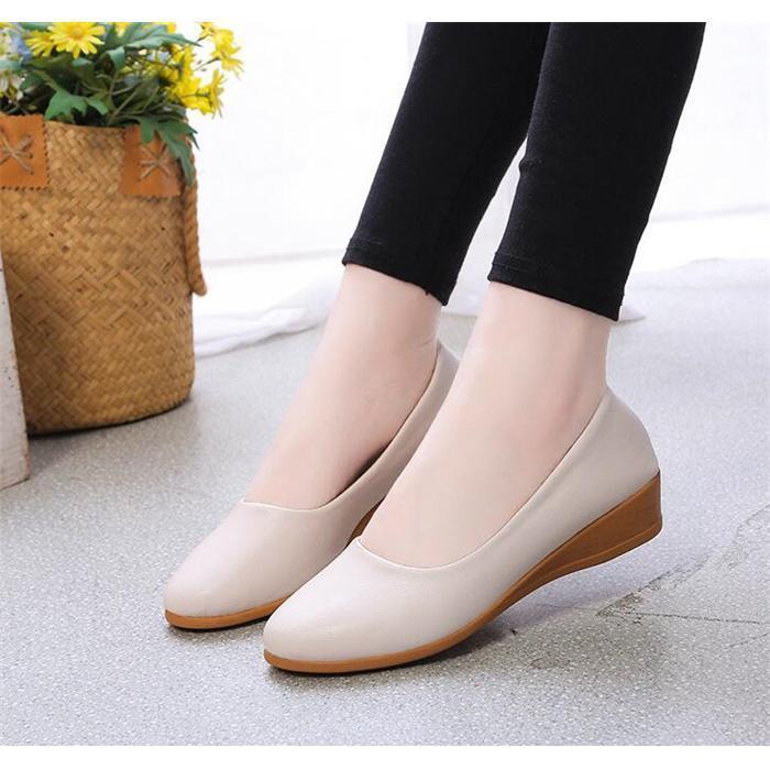 通勤 痛くな シューズ パンプス レディース アーモンドトゥ 甲高 ウェッジソール 究極のパンプス 美脚 ローヒール 幅広 走れる スムースパンプスラウンドトゥ(2-5日出荷)