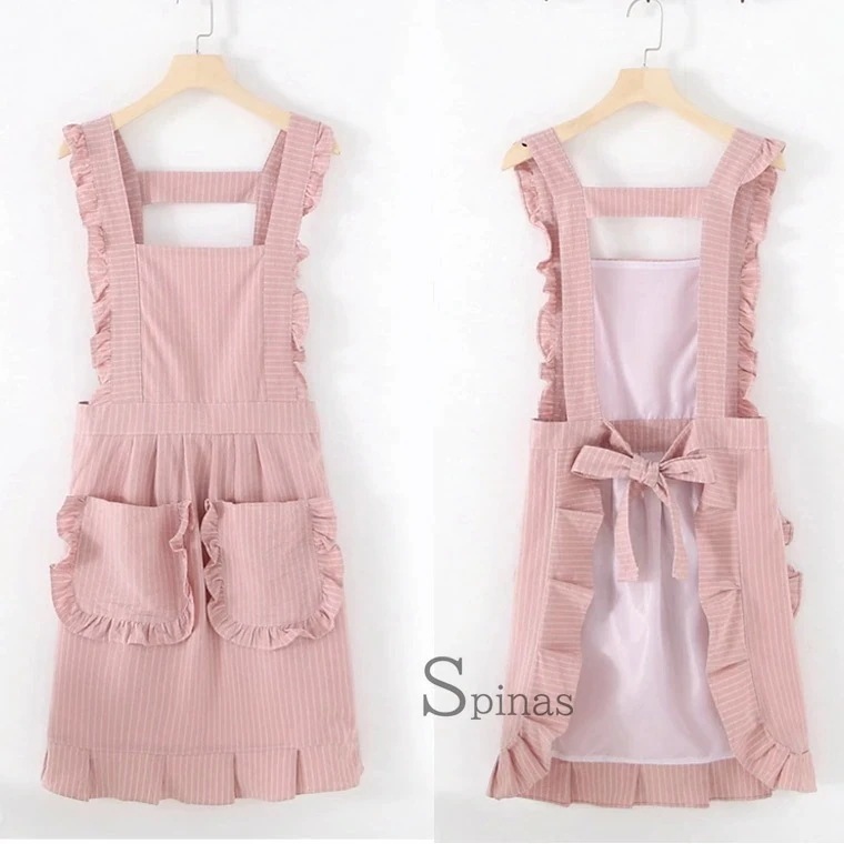 防水防油 汚れづらく長く使える 綺麗カラーエプロンフリル 防水布 チュニックエプロン ワンピース ミドル丈 膝上 ワークエプロン カフェエプロン 風 保育士 美容師 花屋