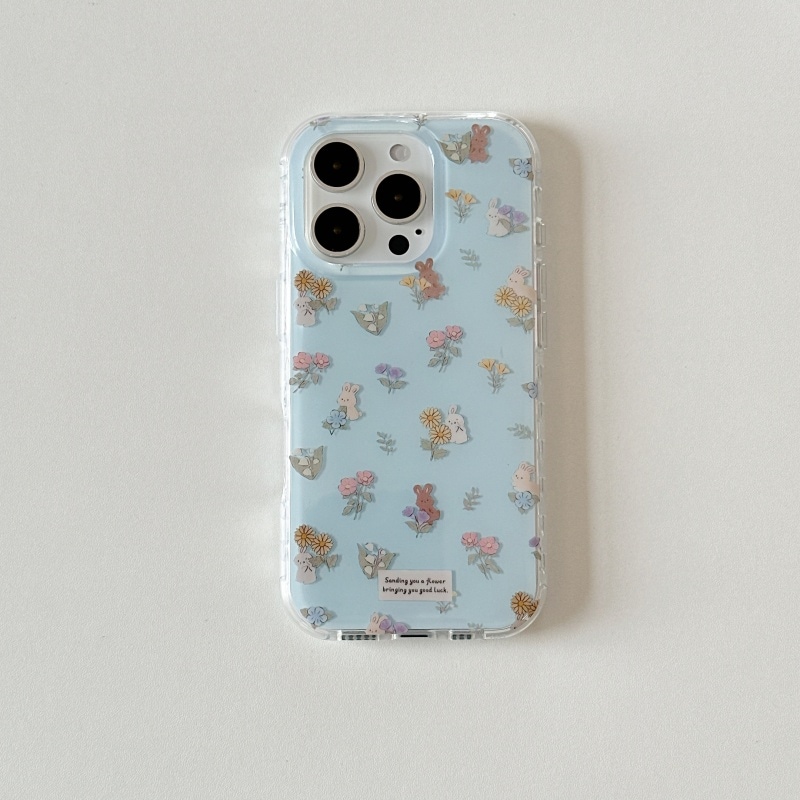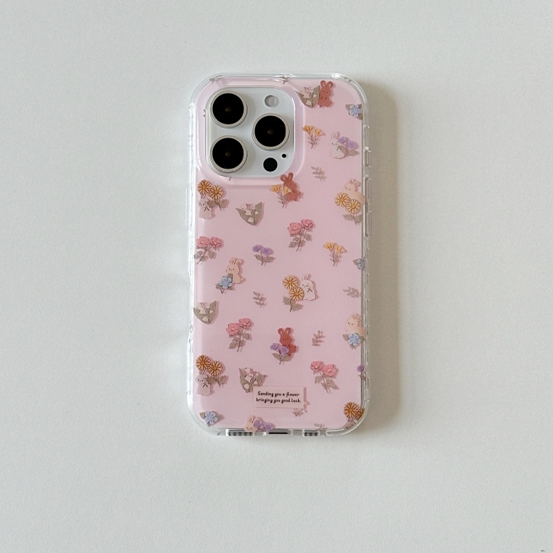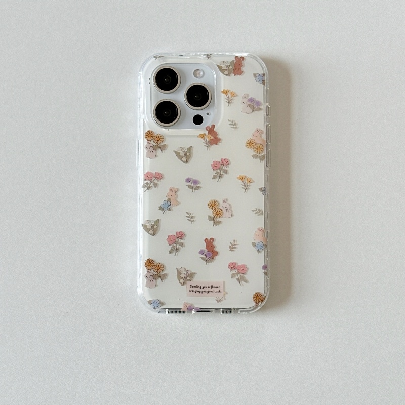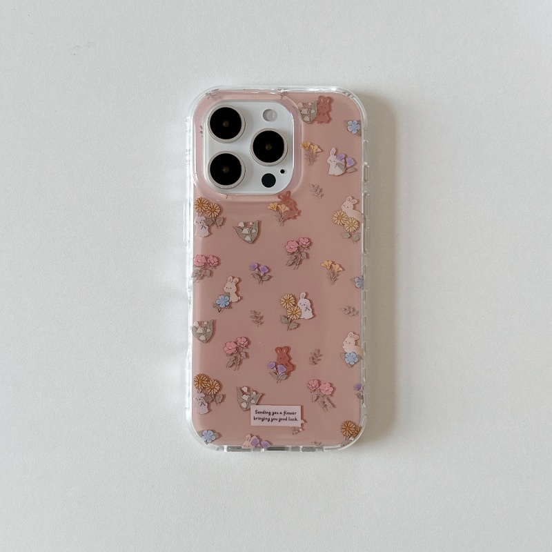 【3日出荷】韓国の人気春の可愛らしい油絵風小花柄 iphone ケース iphone16/15/14ケースPRO PROMAX可愛いうさぎ