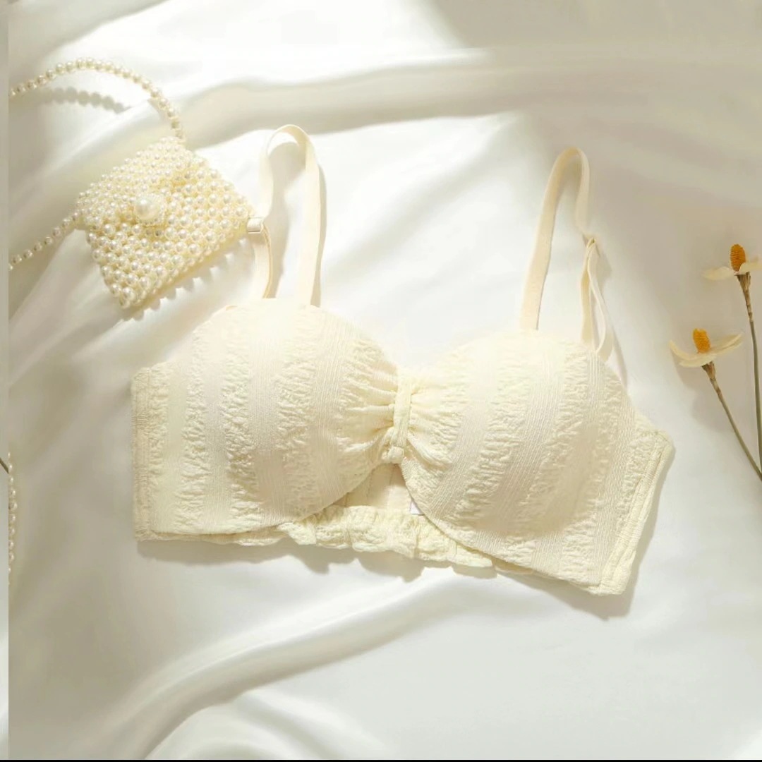 ハーフカップの小さな胸がプッシュアップして大きく見える白い下着女の子ストラップレスaaカップフラット胸セクシーブラセット1086427382
