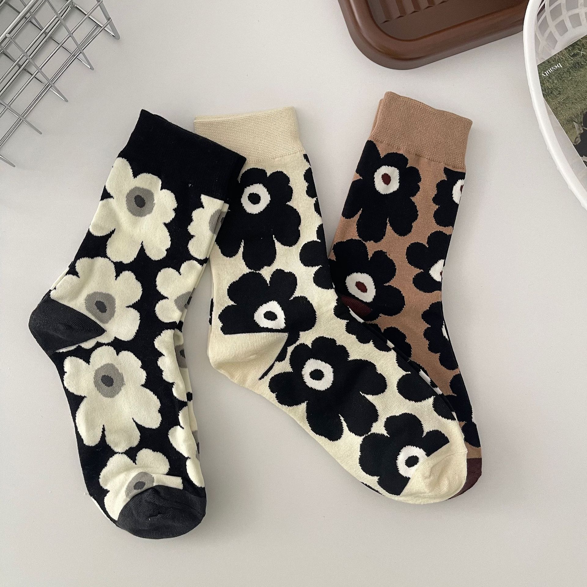靴下 レディース ソックス 花柄 おしゃれ 可愛い 少女 学生ソックス 韓国ファッション 3足セット