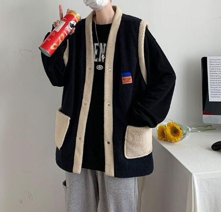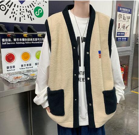 の新作ラムファーベストメンズ港風日系ゆったりレトロなモコモコノースリーブコートベスト