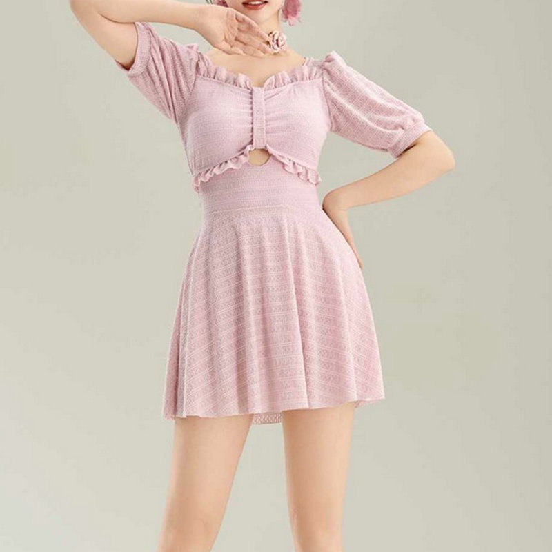 シックな魅力着まわし コンサバティブタイプ 半袖 水着 レディース 体型カバー ワンピース sweet系 ギンガムチェック可愛い水着 温泉&リゾート対応