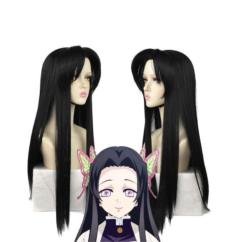 【三日以内発送】 鬼滅の刃 胡蝶 しのぶ ダークパープルブラック かつらコスプレ フルウィッグ かつら カツラ 髪をくくる ハロウィン コスプレ ウィッグ ネット 動画シミュレーション