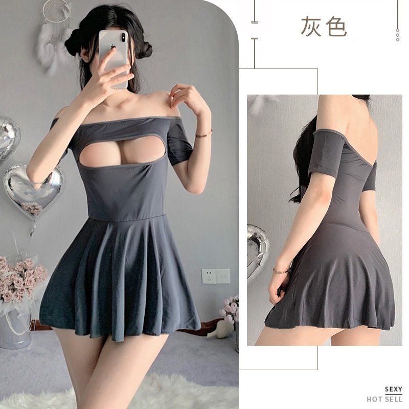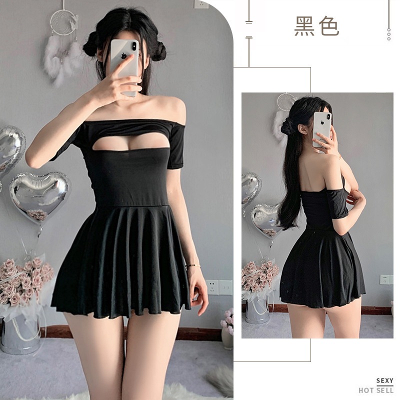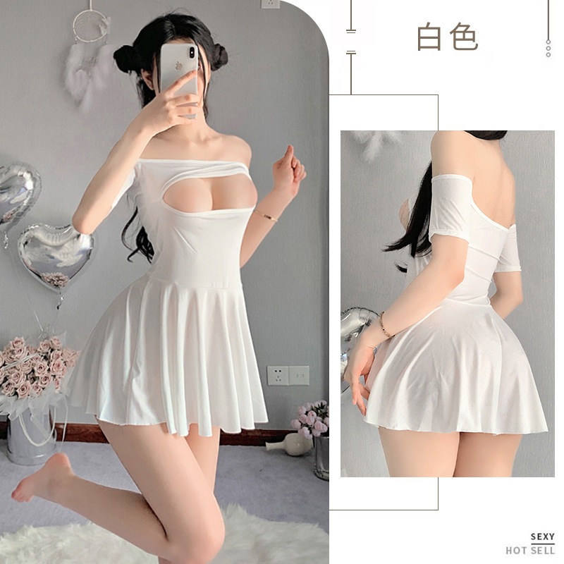 【1点ご購入 で10点プレゼントいたします】下着透かし彫りショルダーアイススリーパー系フリル付き超短スリーパースカートセット