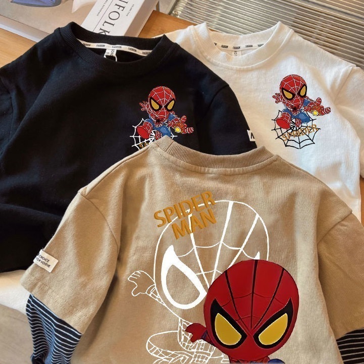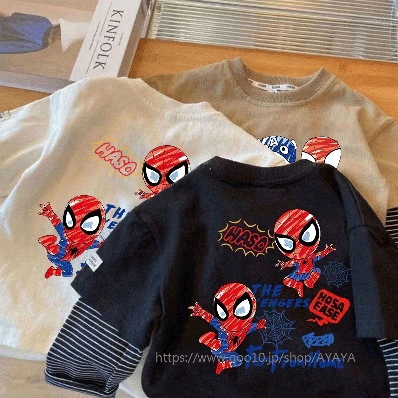 超可愛い 綿 スパイダーマン 子供服 長袖 春 秋 Tシャツ トップス キッズ キャラクター 通学着 通園着 男の子 80-140cm Tシャツ