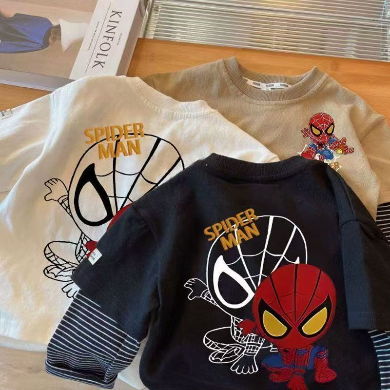 新品 超可愛い 綿 スパイダーマン アイアンマン 子供服 長袖 春 秋 Tシャツ トップス キッズ キャラクター 通学着 通園着 男の子 80-140cm