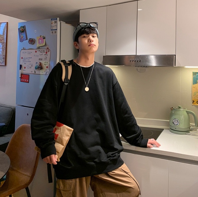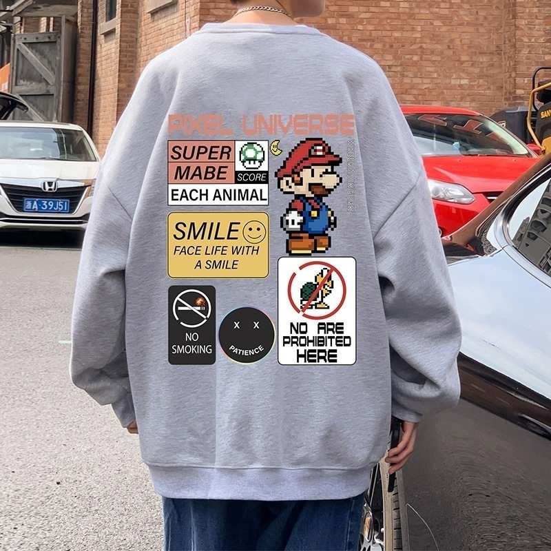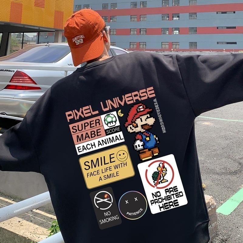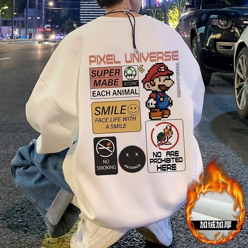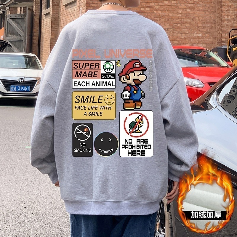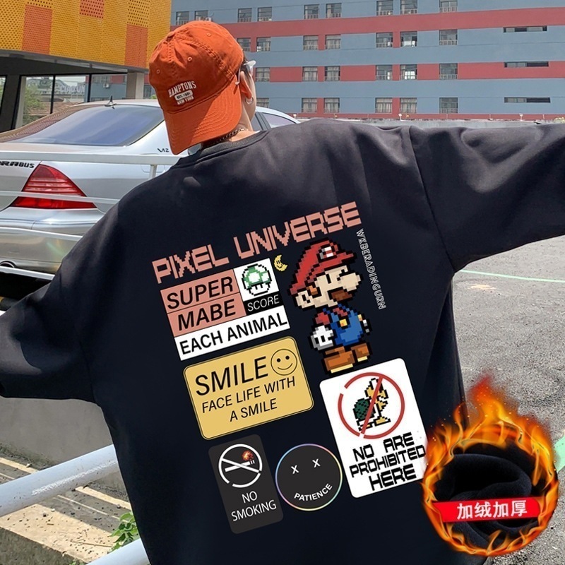 マリオラウンドネックトレーナーメンズ春秋トレンドイン香港風プルオーバー秋冬ヴィンテージゆったりトレ