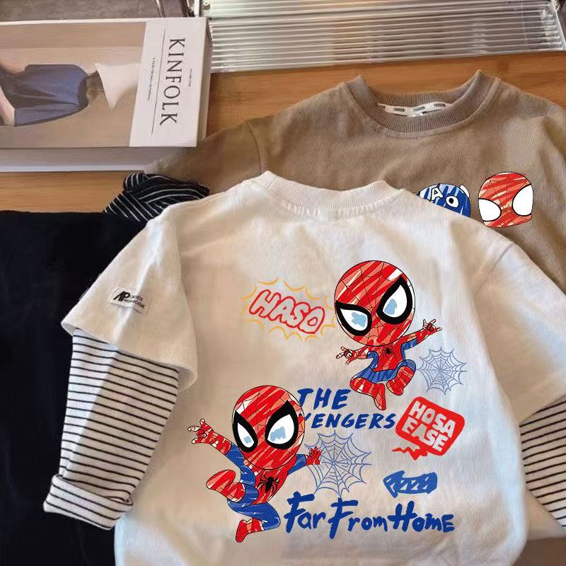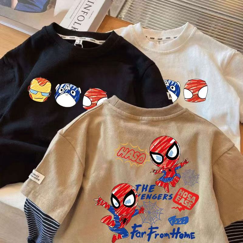 新品 可愛い 綿 スパイダーマン アイアンマン 子供服 長袖 春 秋 Tシャツ トップス キッズ キャラクター 通学着 通園着 男の子 90-140cm