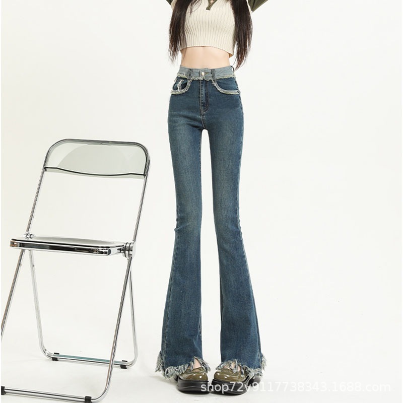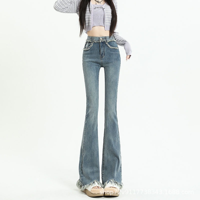 デニム・ジーンズ デザイン感 スリム 耳付き フリンジ マイクロラッパ ジーンズ ばね力 ハイウエスト 修身 薄い色 馬蹄ズボン