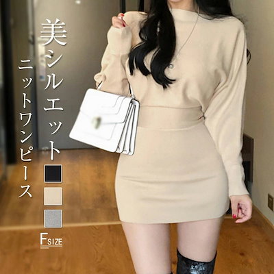 ワンピース ニットワンピース レディース ニット ワンピ タイト セーター ニットセーター ボートネック ショートワンピース ショート丈 長袖 美シルエット エレガント 着瘦せ きれいめ 無地 セクシ