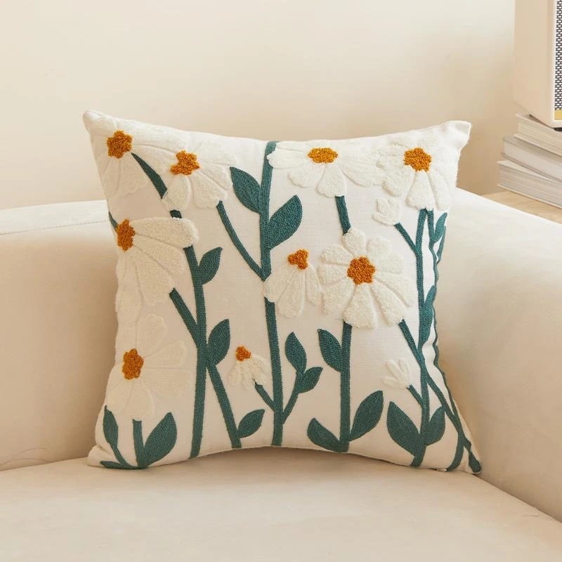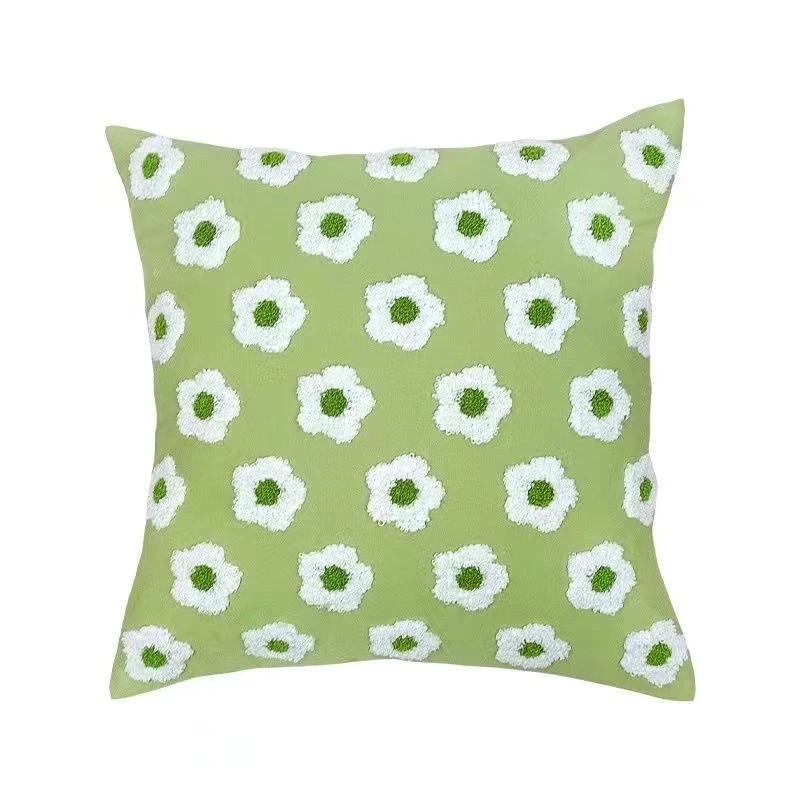 クッション フランス風グリーン系 抱枕 フリンジ 刺繍 リビング ソファ 背もたれ 通気性