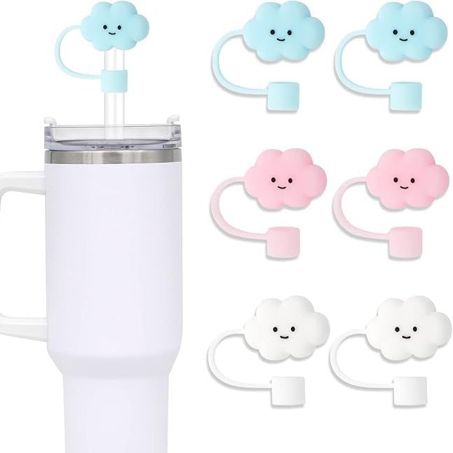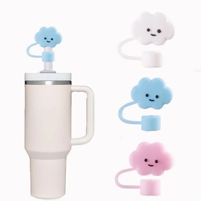 スタンレーStanley 30&40オンスタンブラー対応 10mm 雲型ストローカバーキャップ かわいいシリコン雲ストローカバー ストロープロテクター ソフトシリコン雲型ストロー蓋 10mmストロー用 3個パッ