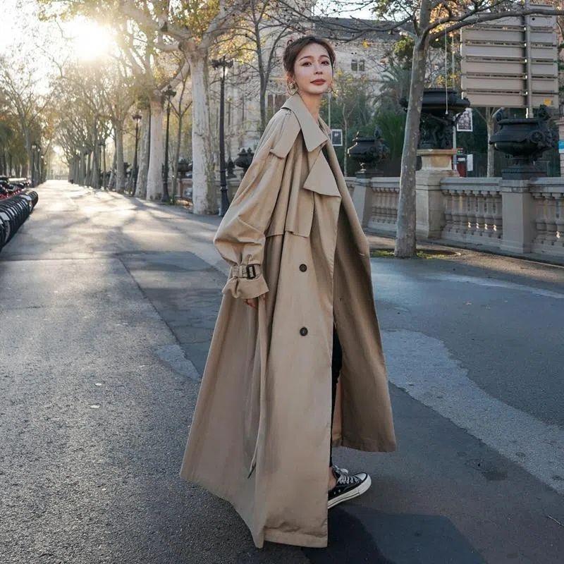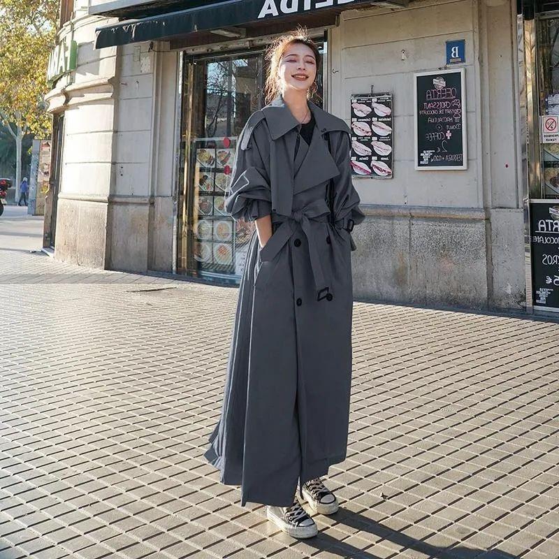 韓版ウインドブレーカー女子学生超ロングから足首まで長身ビッグサイズのコート秋冬