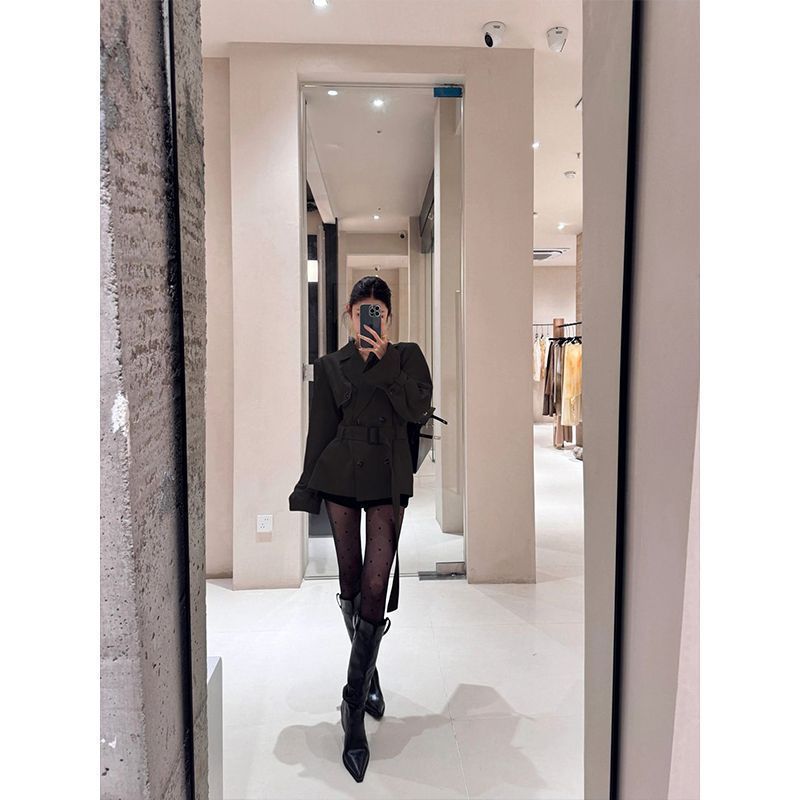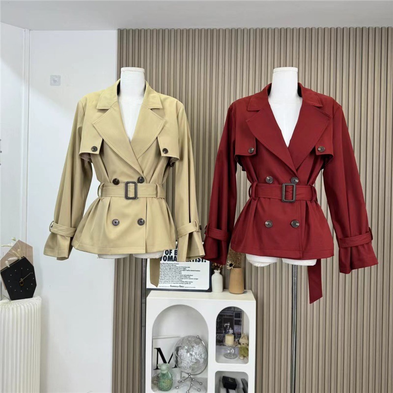 春と秋の雰囲気ギャルカーキのシルエットで痩せて見えるダブルバックルのミディアムパーカー